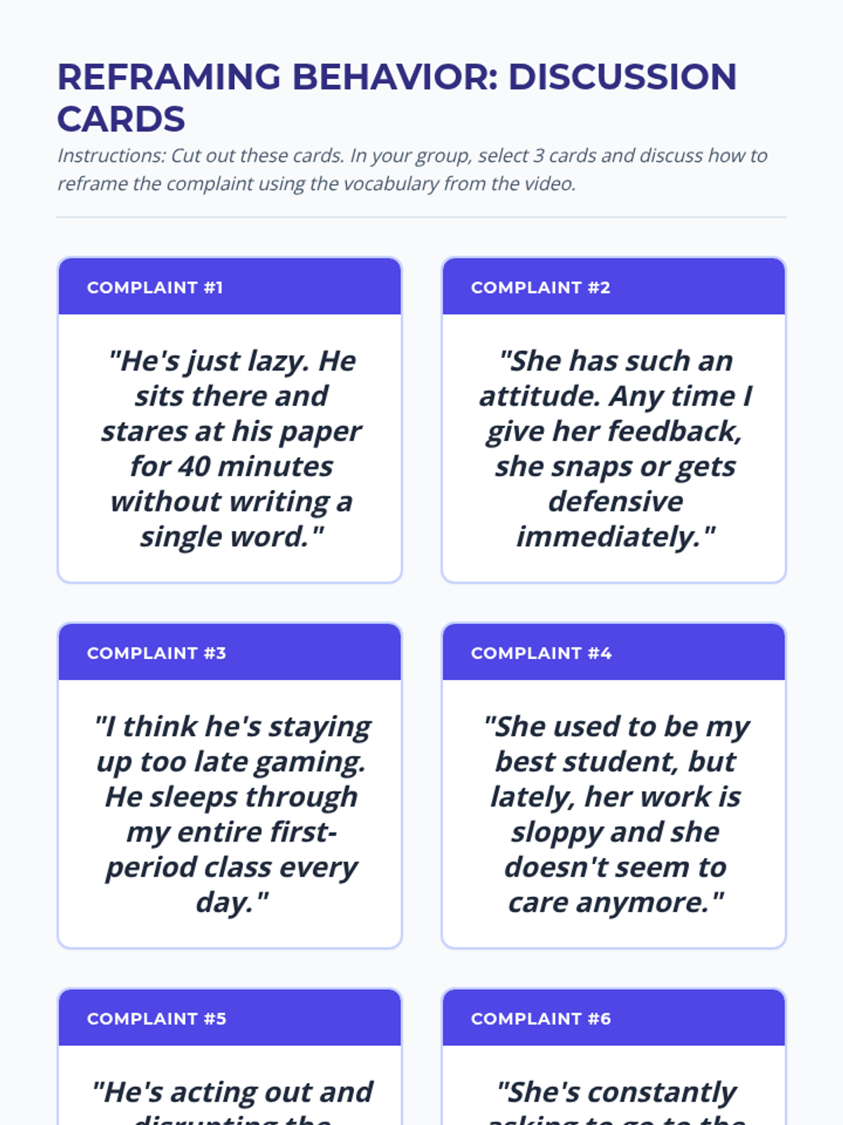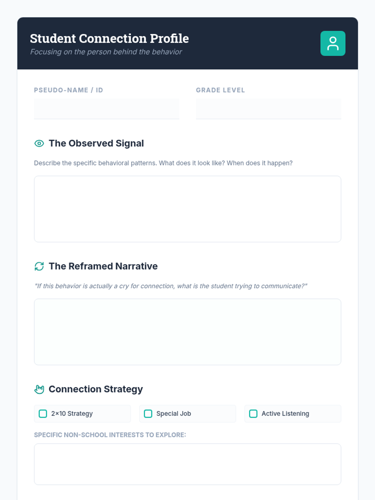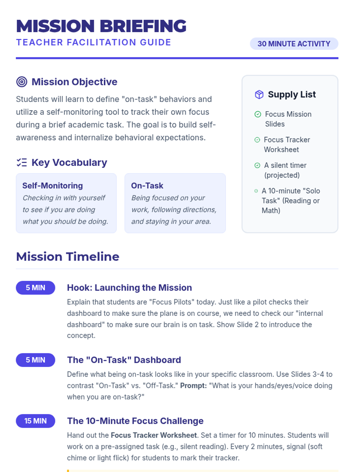 Functional behavior assessment, data tracking, and de-escalation strategies for managing classroom conduct. Addresses positive reinforcement, token economies, and individualized behavior contracts to support student self-regulation.