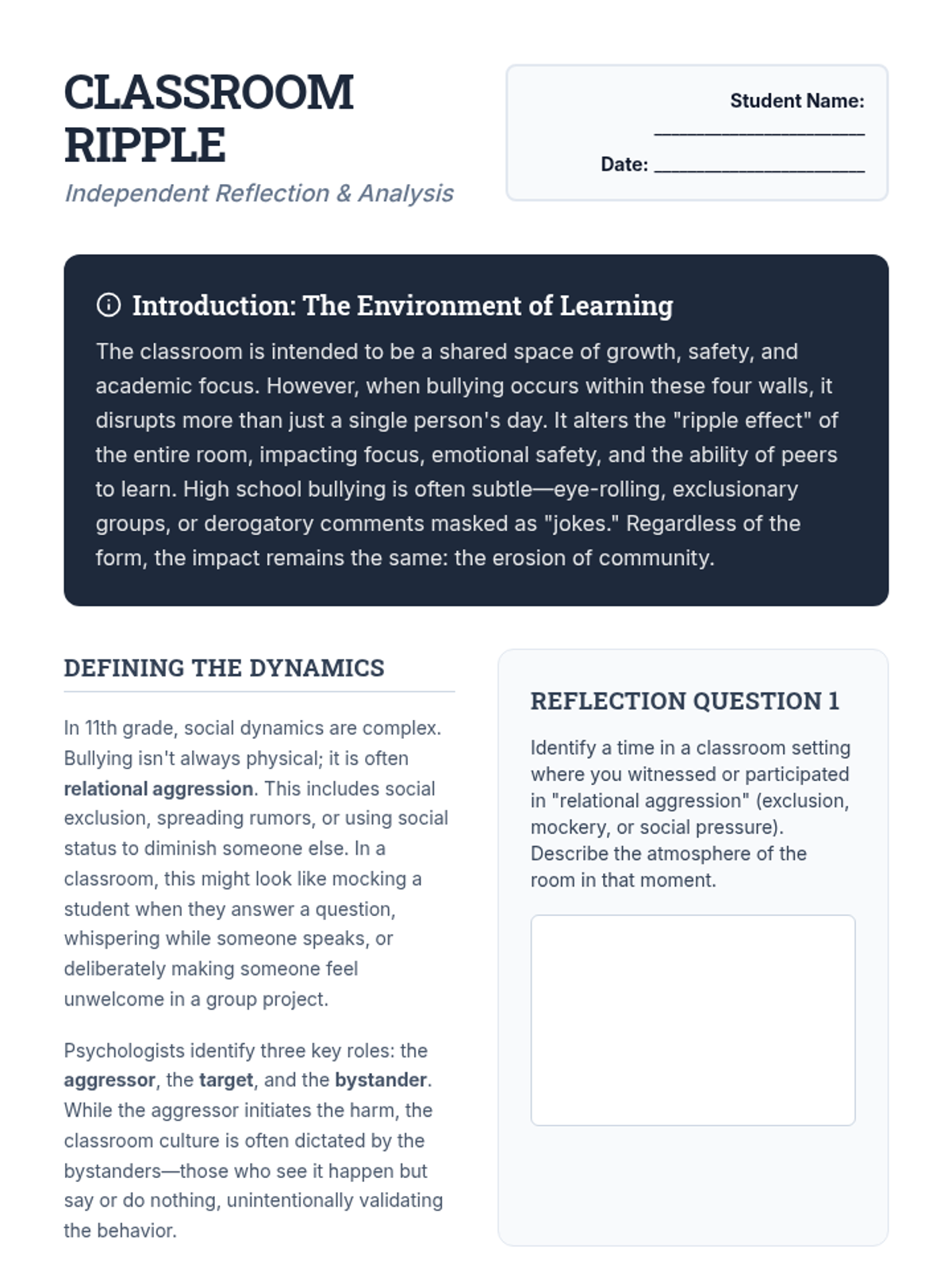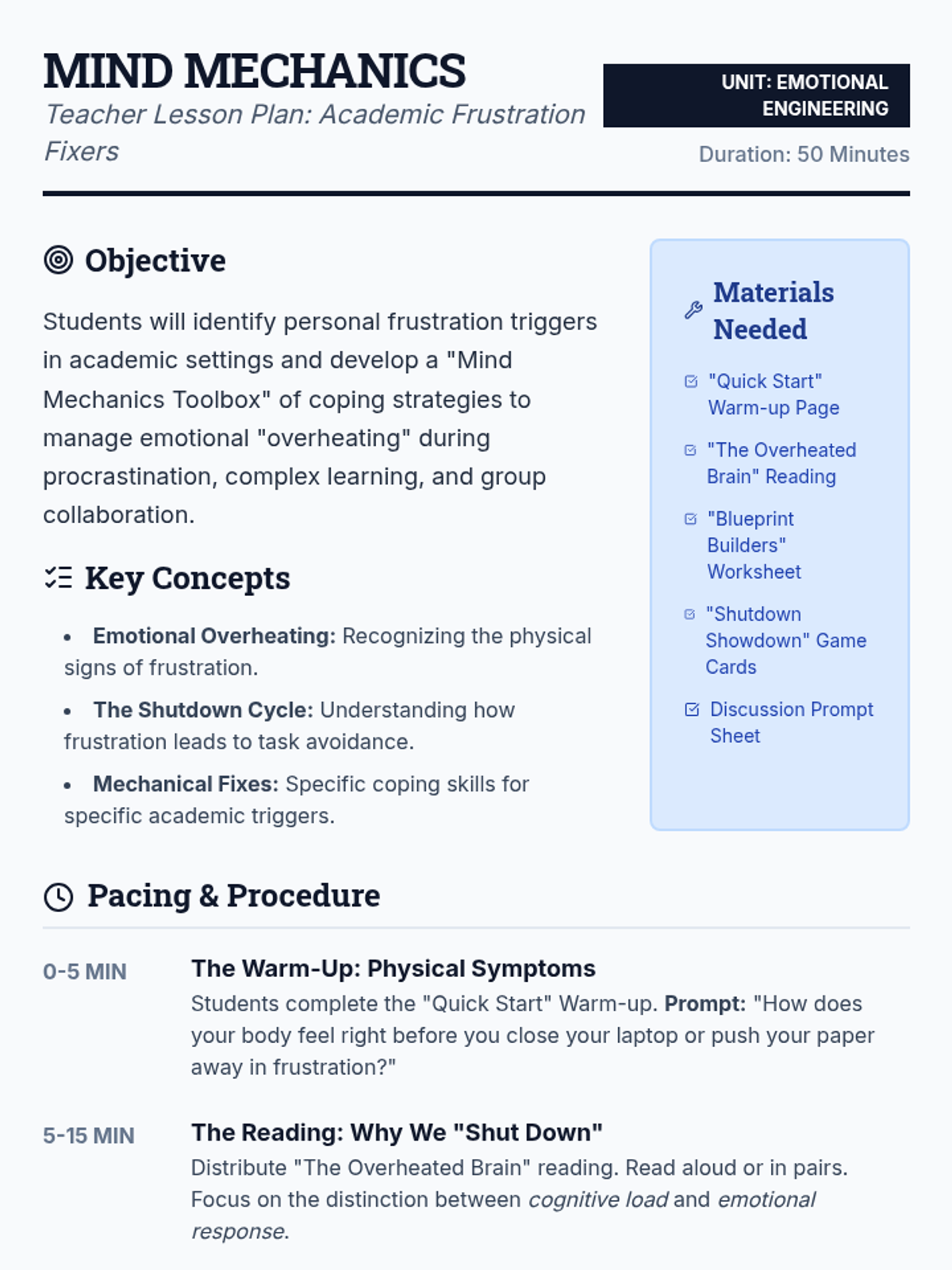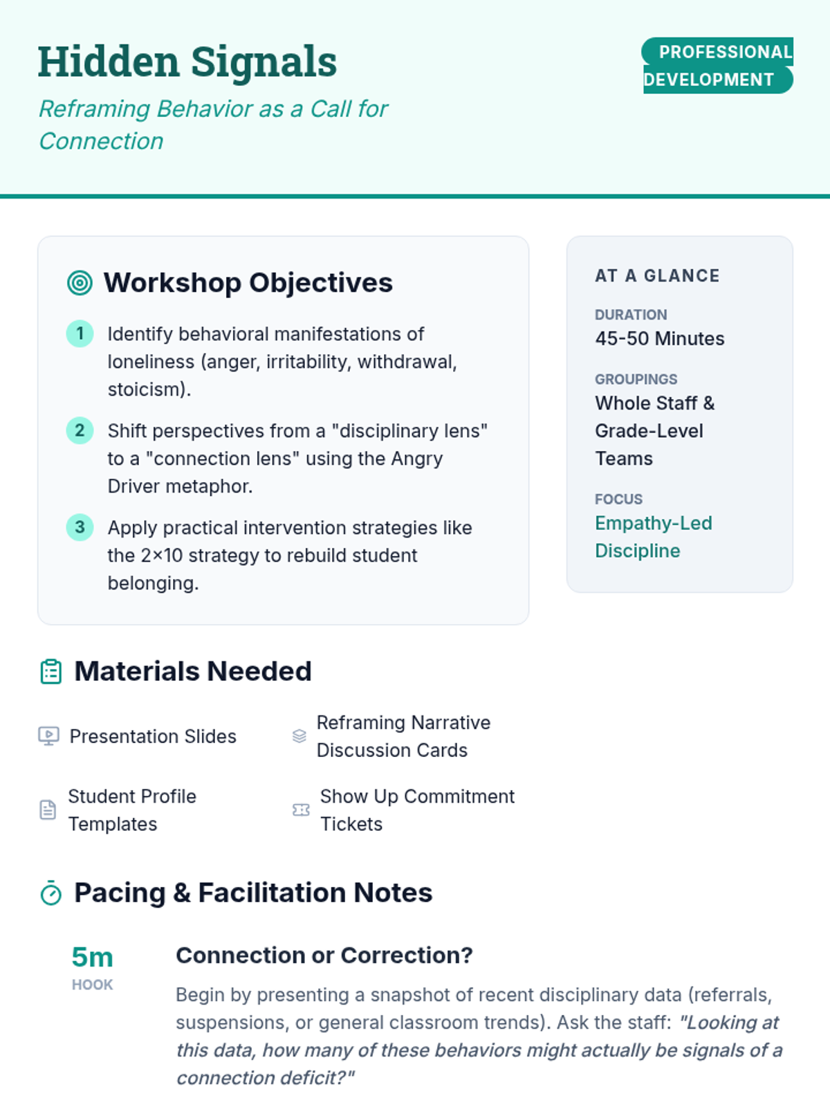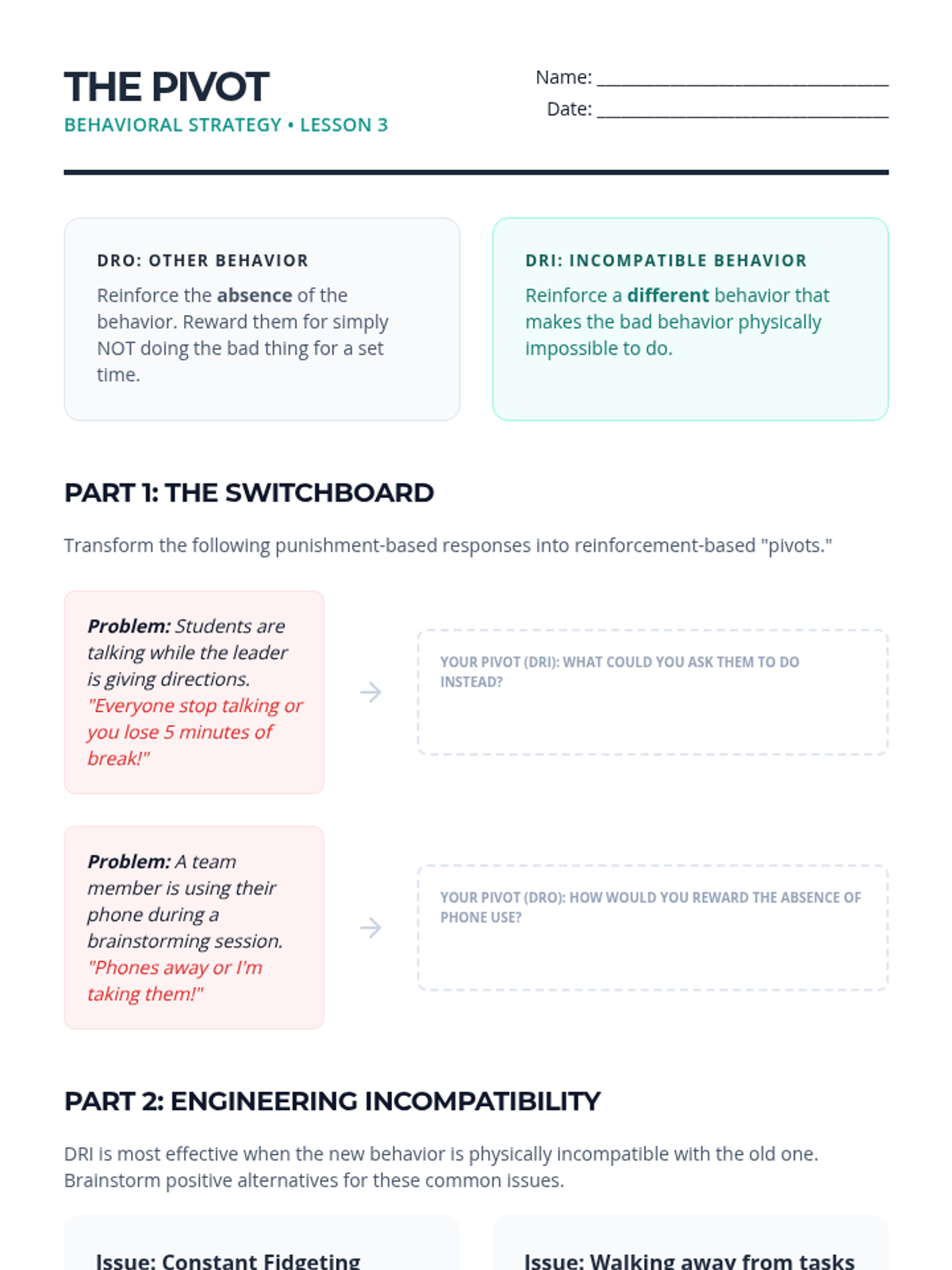 Functional behavior assessment, data tracking, and de-escalation strategies for managing classroom conduct. Addresses positive reinforcement, token economies, and individualized behavior contracts to support student self-regulation.