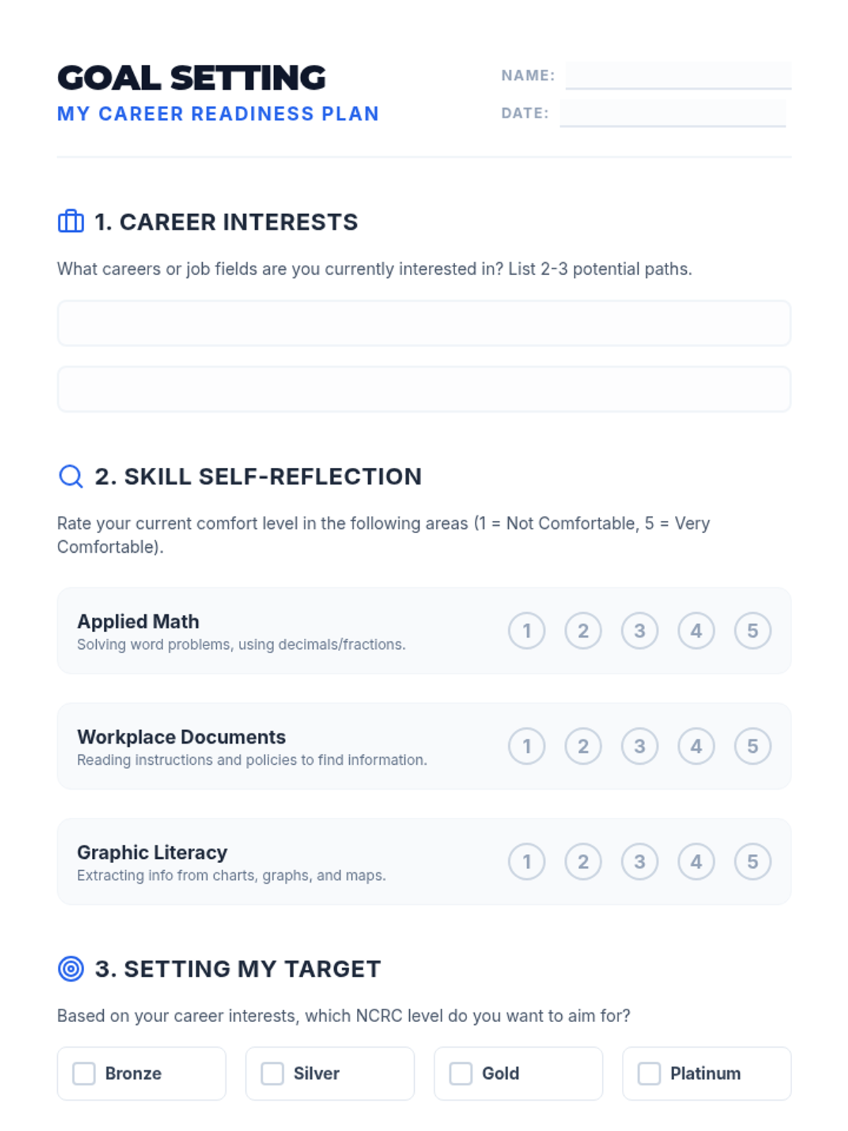 A 3-hour foundational session covering personal strengths, professional behavior, and basic application skills. Includes hands-on activities tailored for individual instruction and accessible learning.
