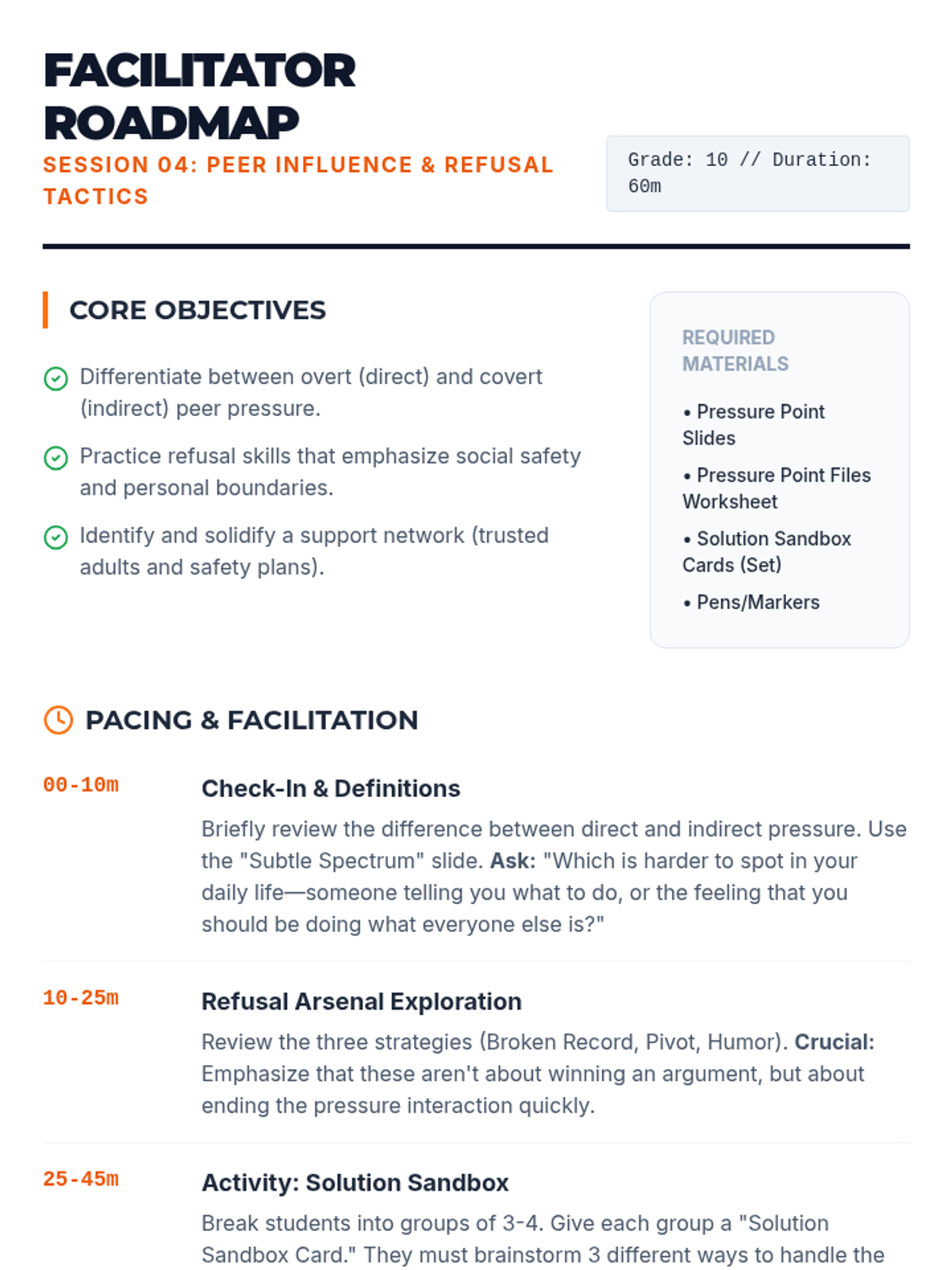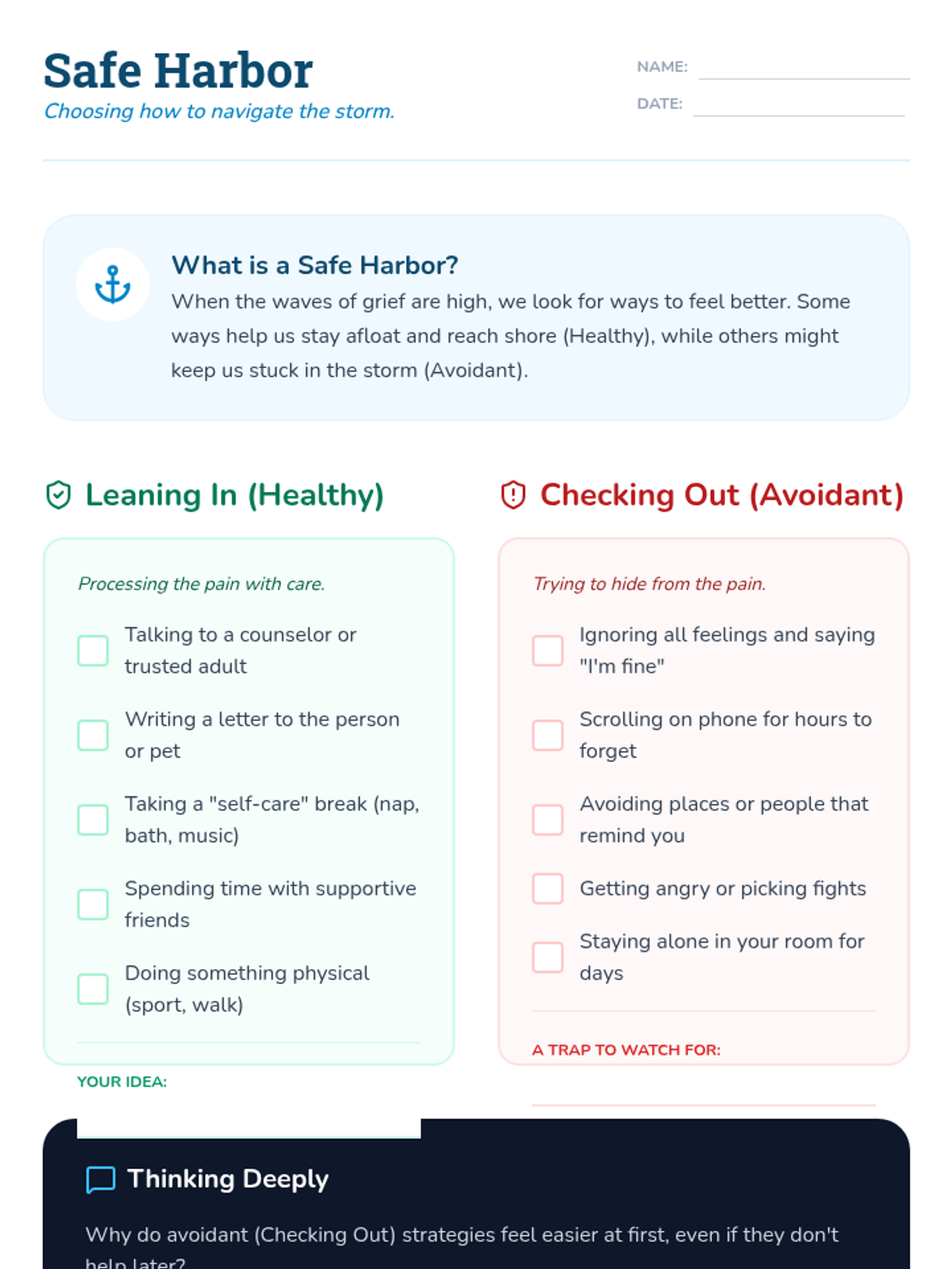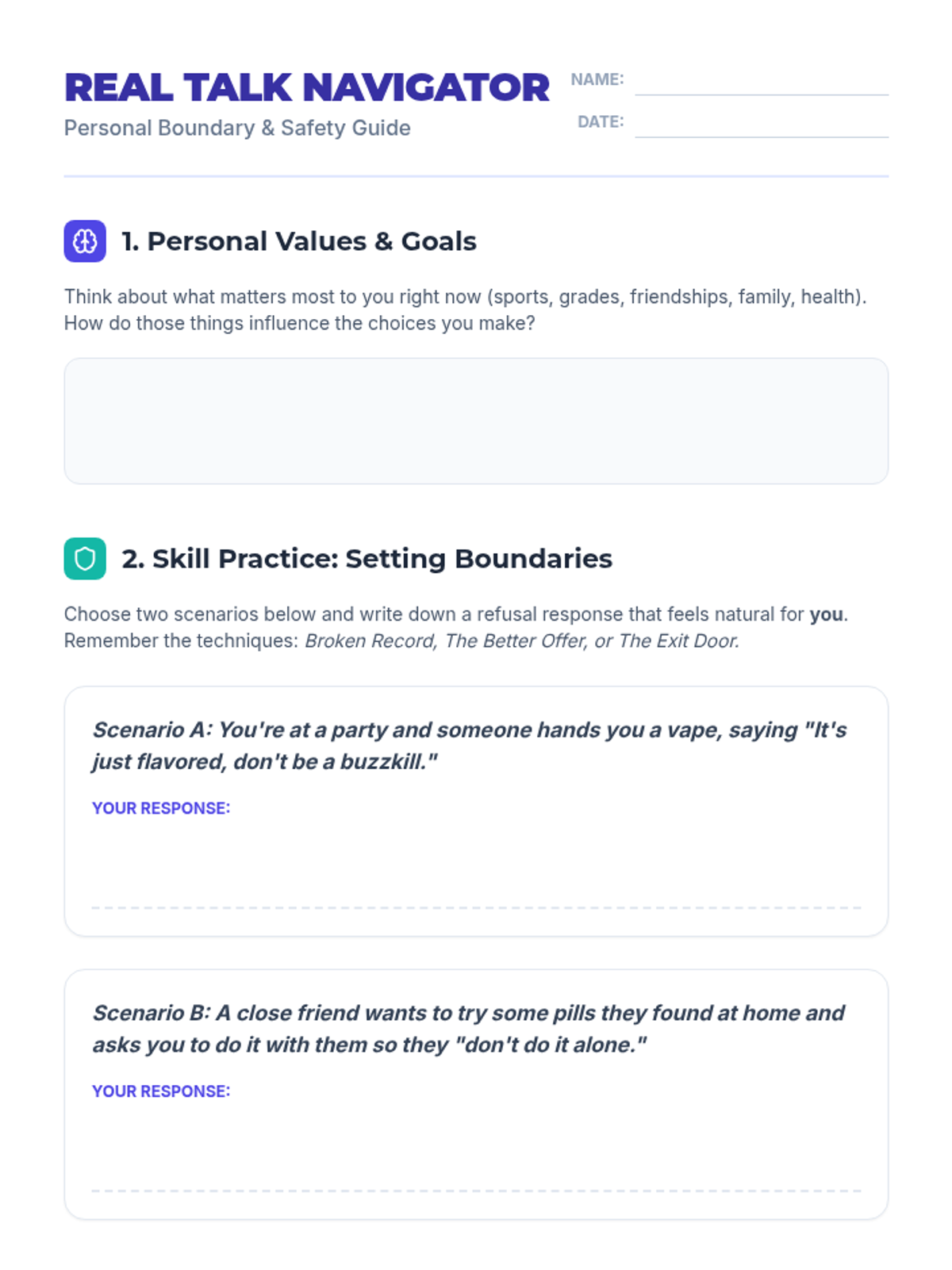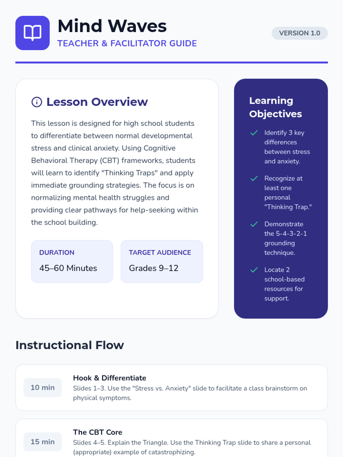 Identifies mental health crises and suicide warning signs while developing personal safety plans and grounding techniques. Equips users with peer gatekeeper skills and direct pathways to professional crisis resources and hotlines.