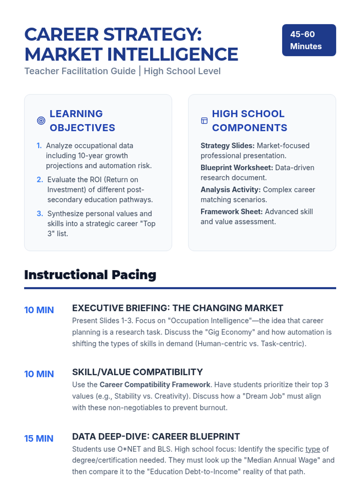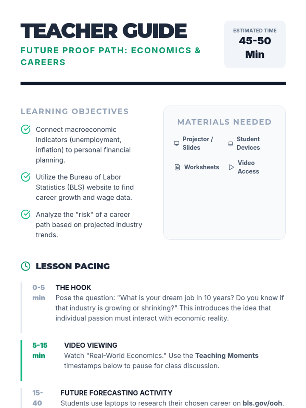 A realistic and empowering lesson designed for high school seniors facing economic anxiety. It provides strategic insights into job market trends, alternative career paths, and financial agency in a challenging economy.