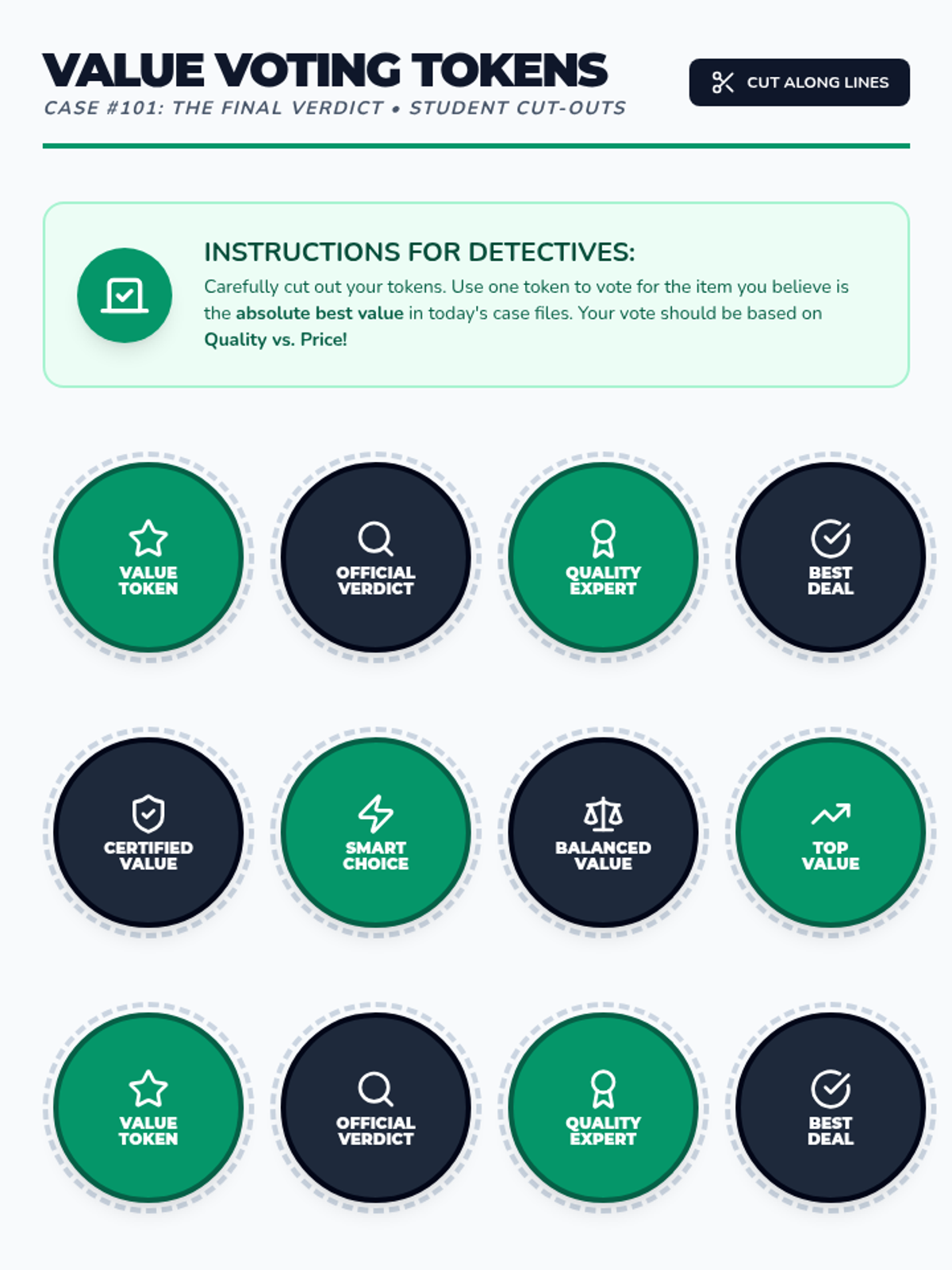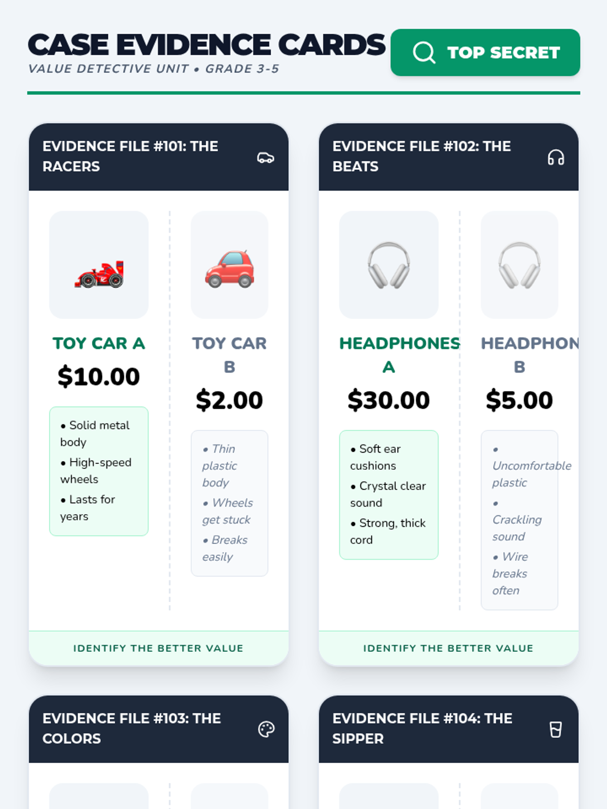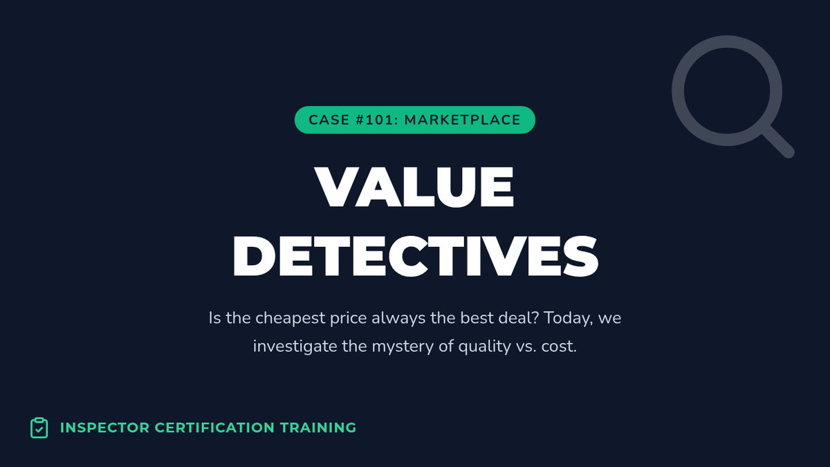 Students become 'Value Detectives' to distinguish between price and value, learning that the cheapest option isn't always the best deal. The lesson uses a specific video segment to define quality and value, followed by a hands-on item comparison activity.