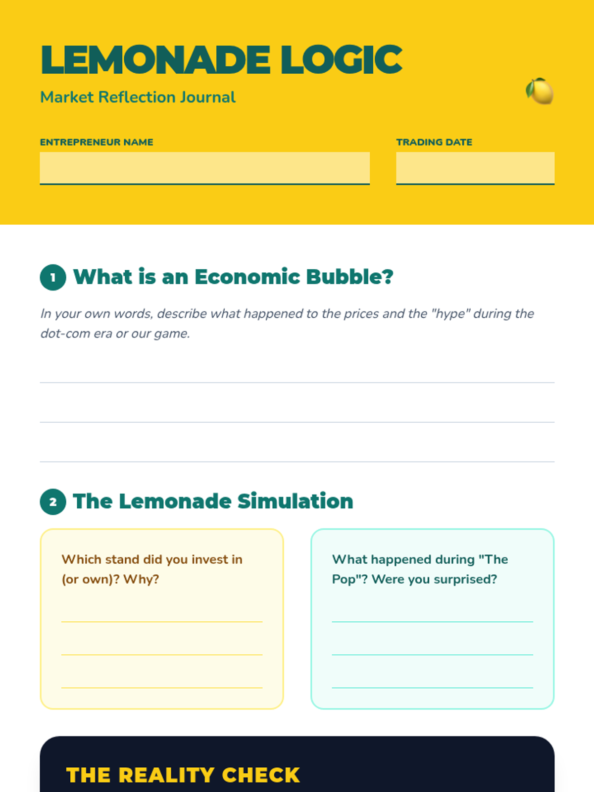 A middle school financial literacy lesson exploring economic bubbles through the 1990s dot-com boom and a hands-on lemonade stand simulation. Students learn to distinguish between 'hype' and 'profit' while analyzing how speculation leads to market crashes.