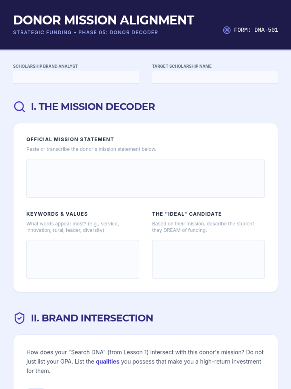 Students conduct a deep-dive audit of their financial needs and personal characteristics to identify niche scholarship opportunities.