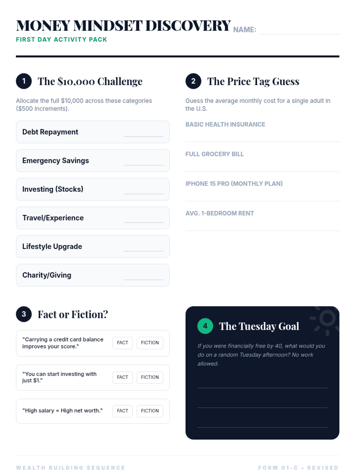 Focusing on the W-4, students explore strategic tax withholding decisions and how they affect monthly take-home pay versus annual refunds.