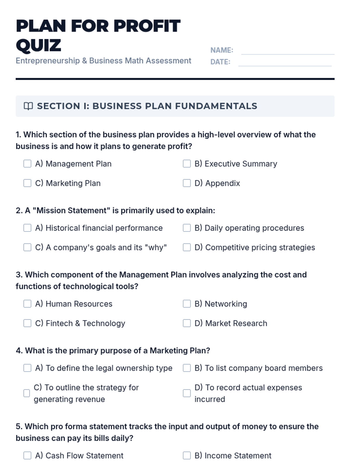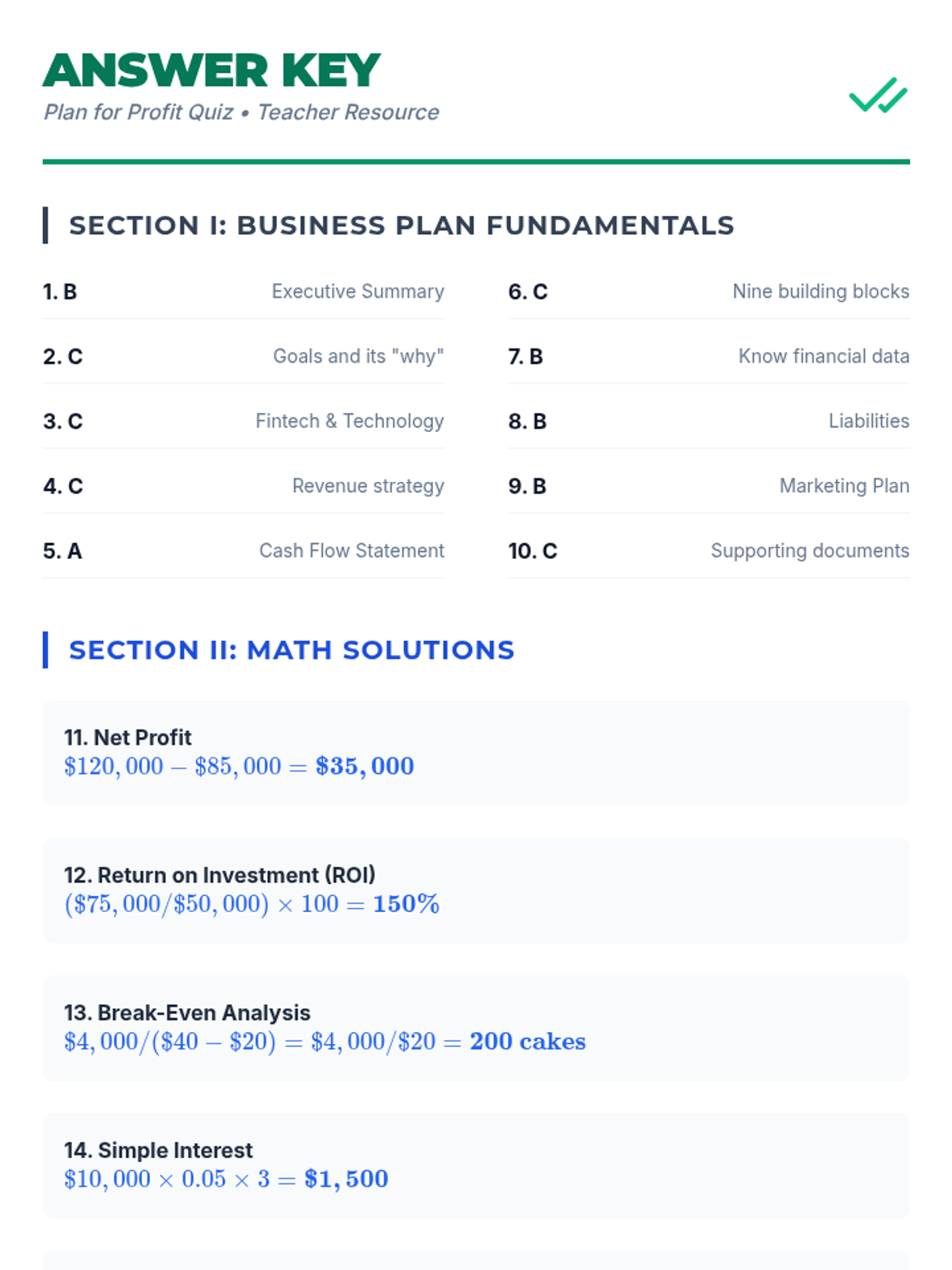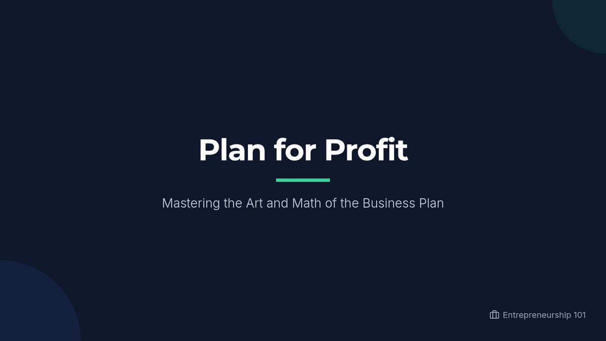 A comprehensive lesson on creating and sharing a professional business plan, featuring a deep dive into financial projections and business math essentials. Students will explore key components like the Executive Summary, Marketing Plan, and Financial Plan while mastering calculations for profit, ROI, and break-even points.