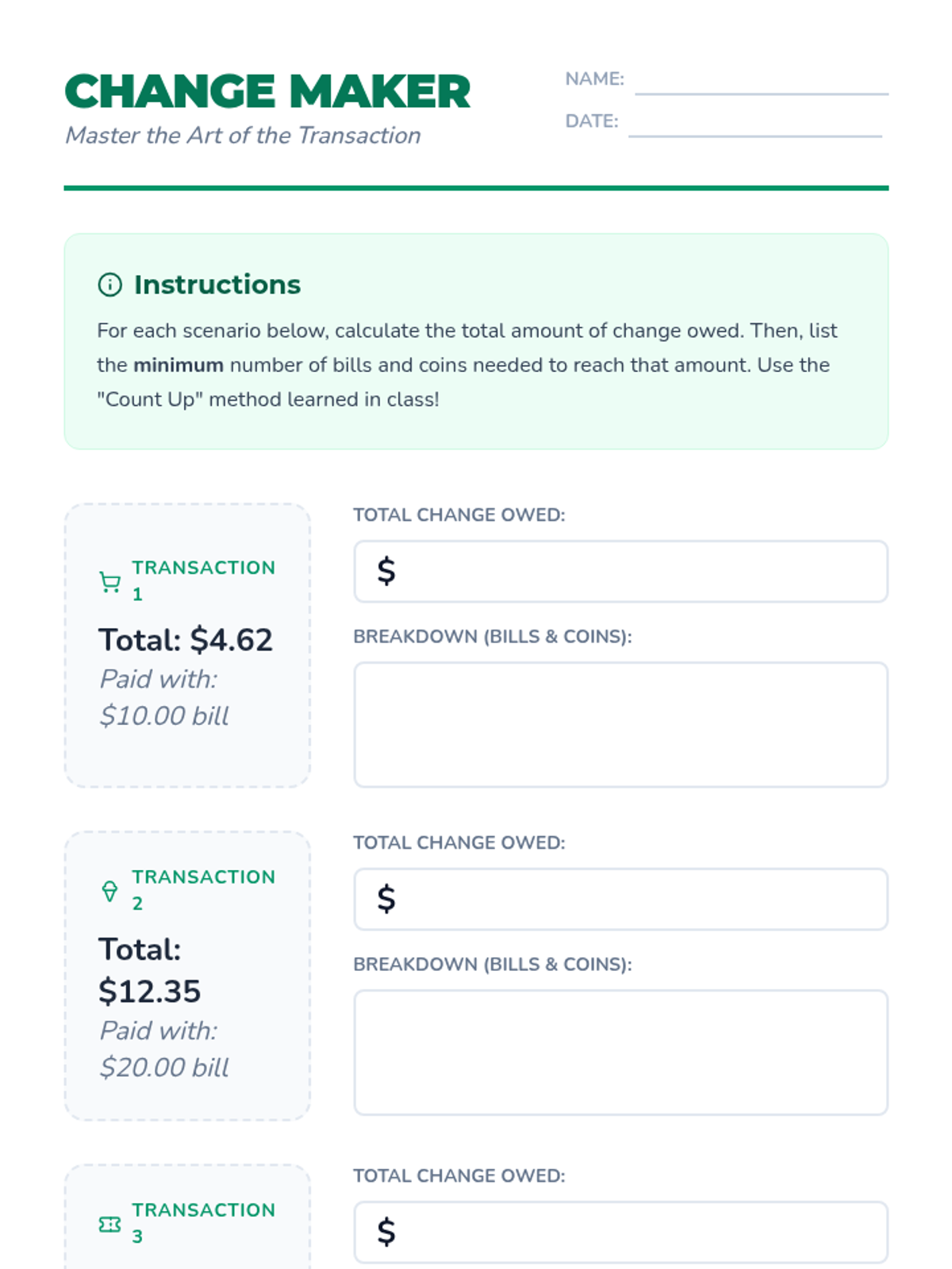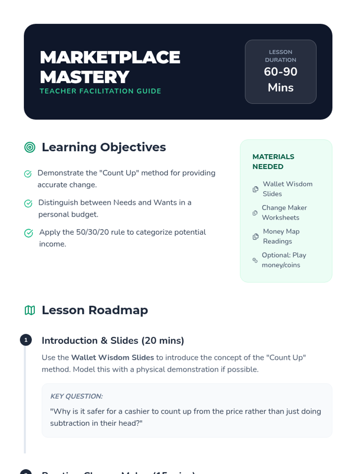 A comprehensive lesson designed to help students master the art of counting change and develop foundational money management skills like budgeting, tracking expenses, and saving.