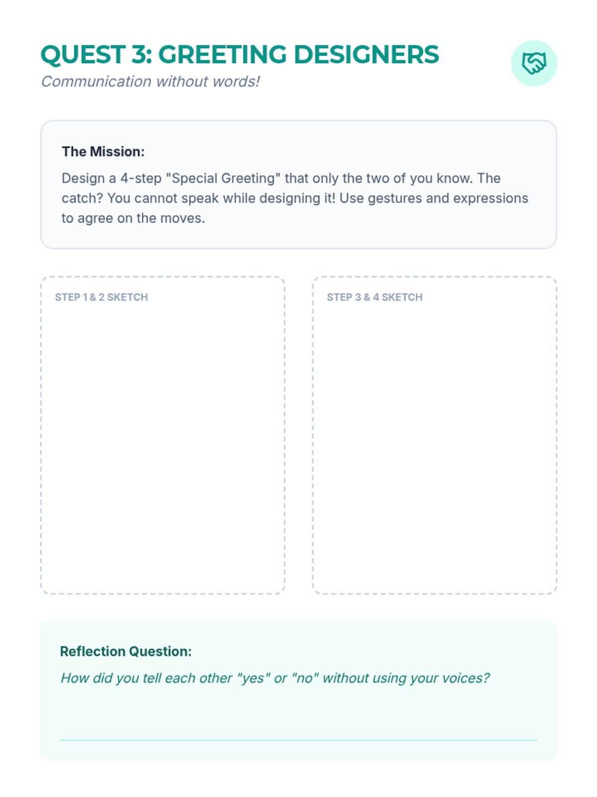 A culminating event where students plan and execute a simple shared activity (like a dance party or snack share). They reflect on how doing things together feels different than doing them alone.