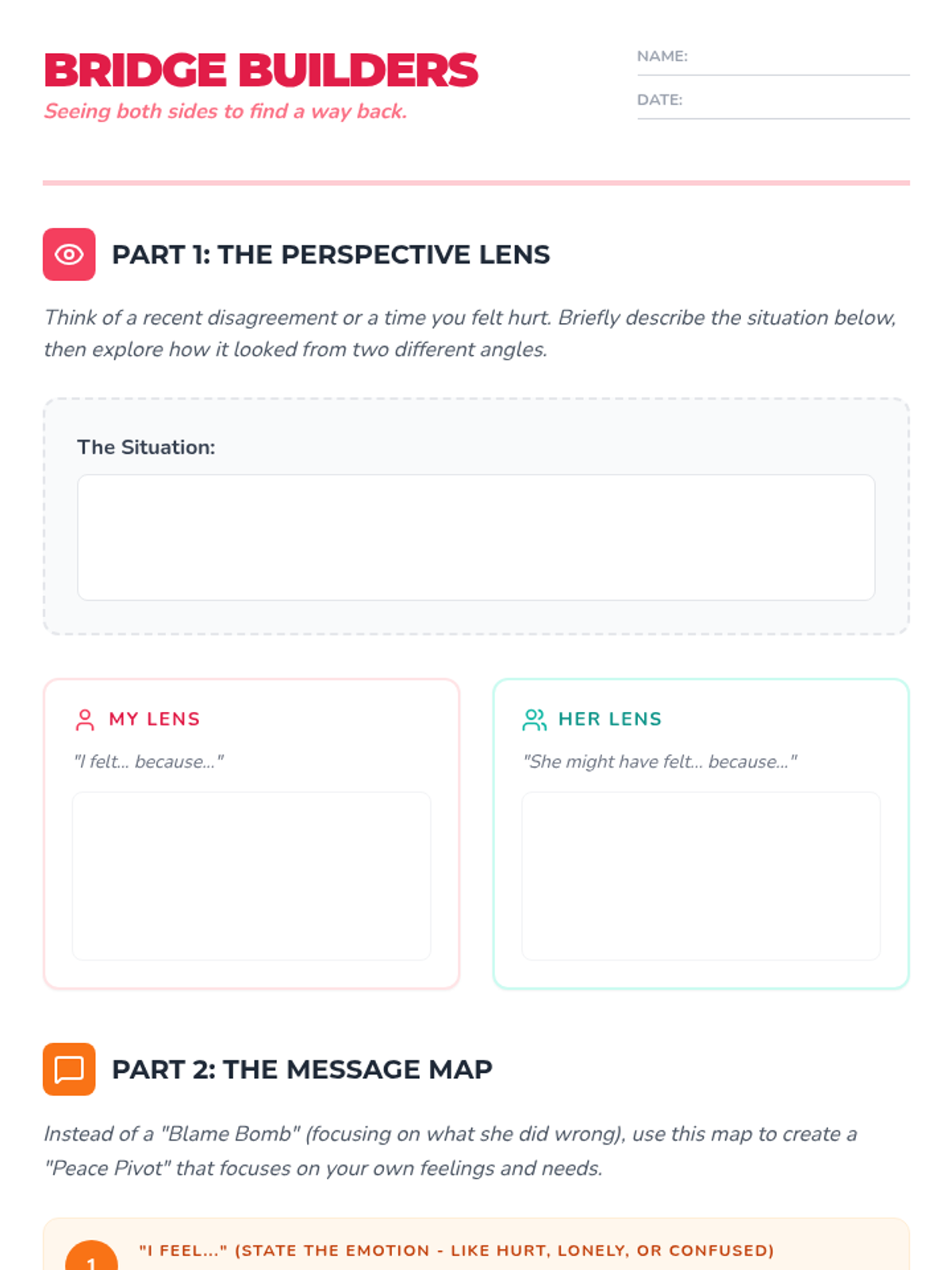 A lesson designed for small groups of girls to navigate social conflict by exploring different perspectives and practicing assertive communication. Students will learn to use 'I' statements and bridge gaps in understanding during disagreements.
