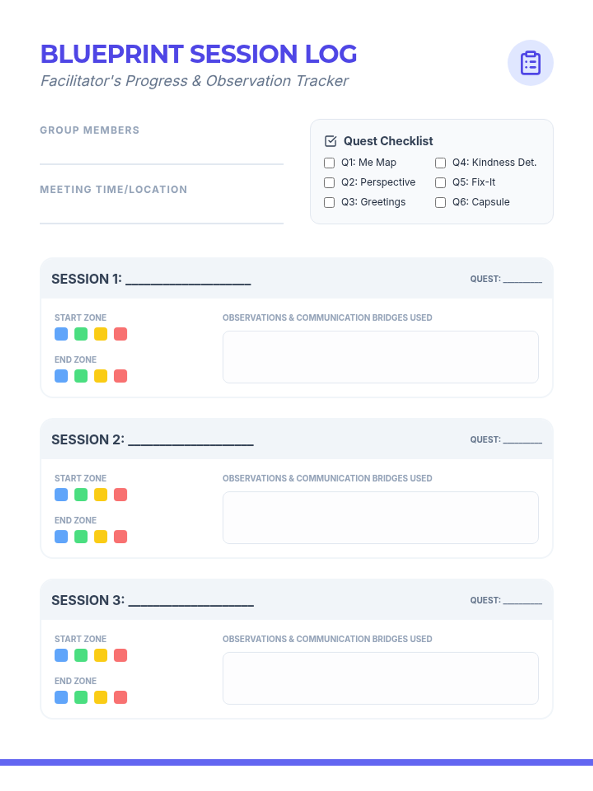 Finalizes the quest by teaching SMART goal setting and reflecting on the skills learned throughout the 6-week program.
