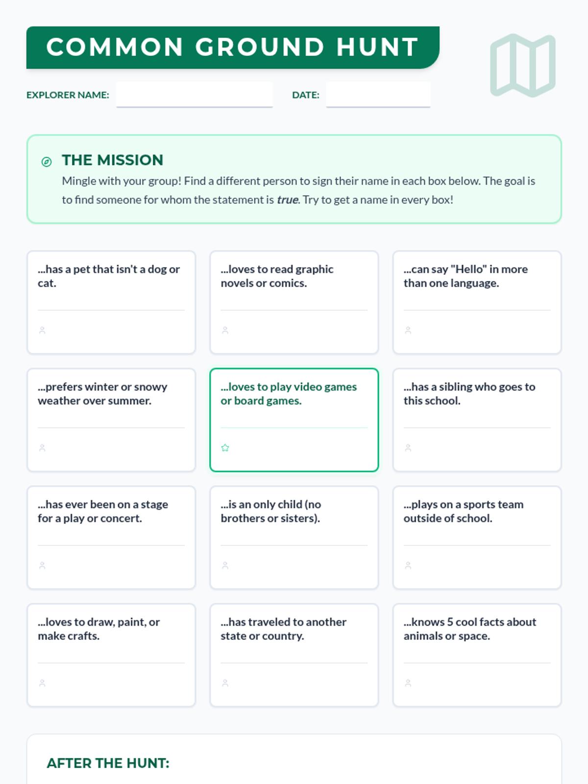 Students explore the concept of the classroom as a team where every person is a vital piece. Through a collaborative puzzle activity, they learn how their presence makes the group complete and strong.