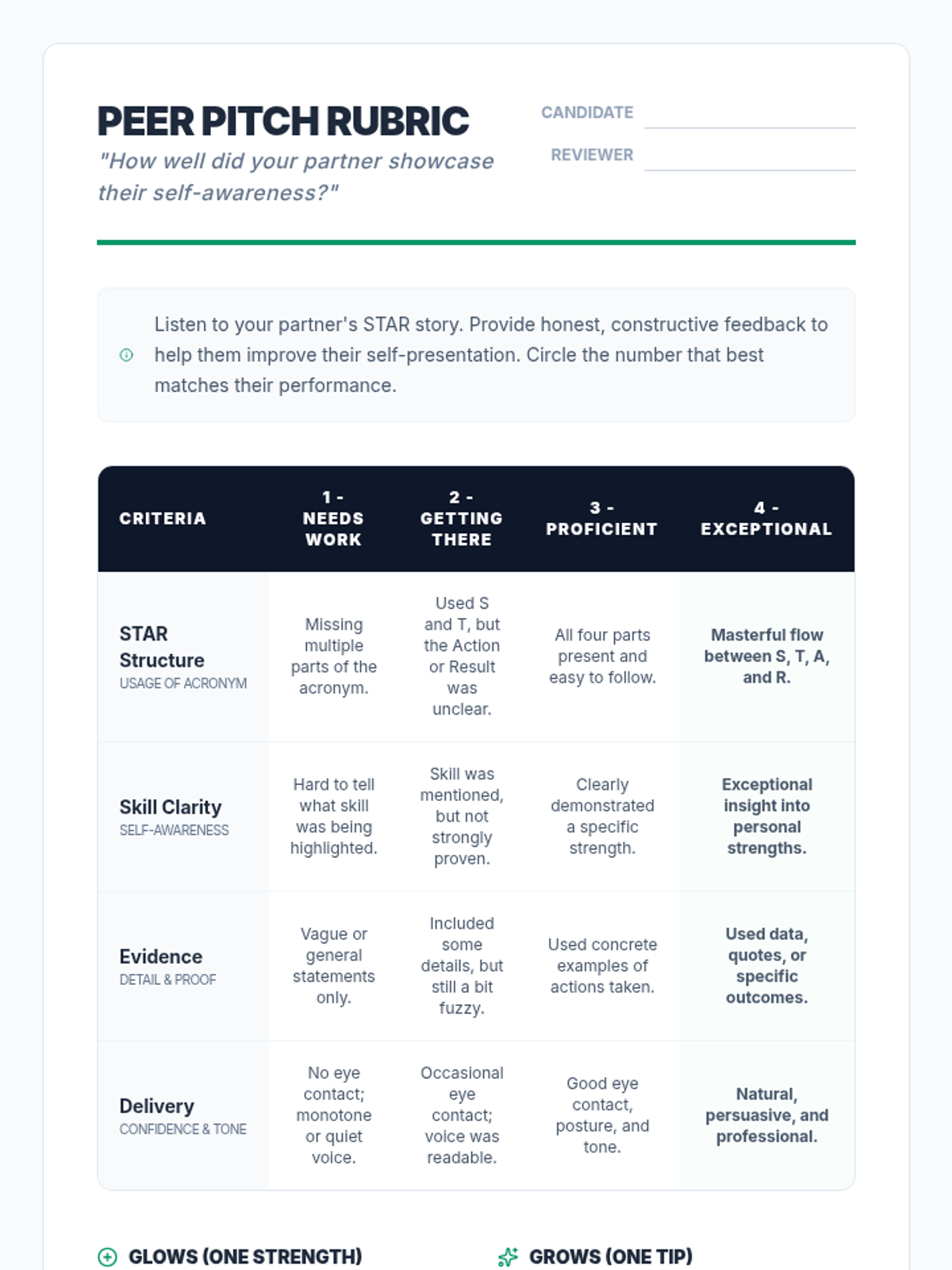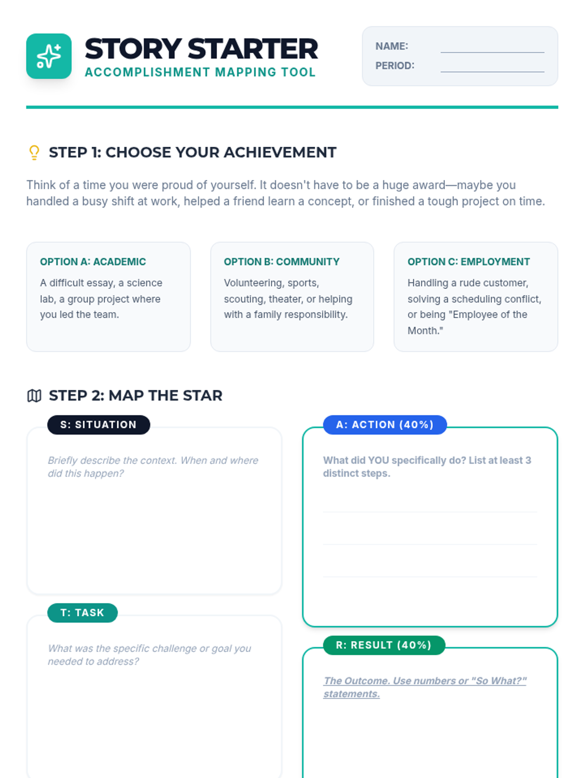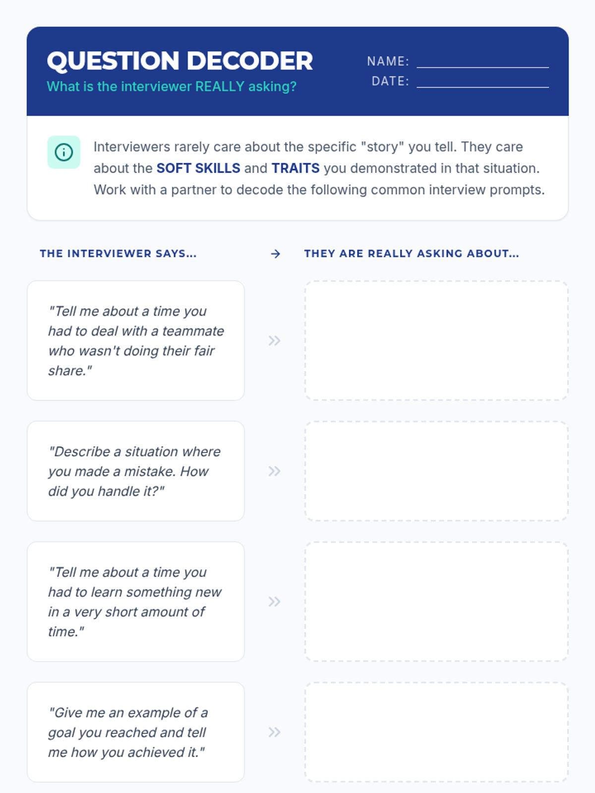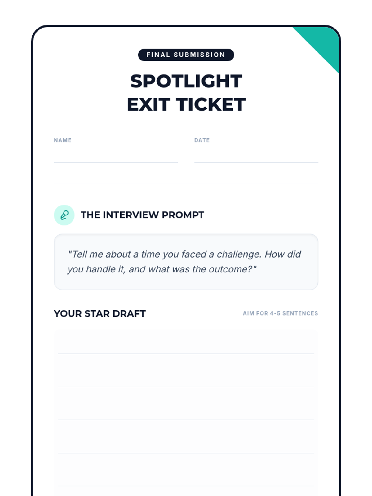 A workshop-style lesson where students use audit data to re-engineer their STAR stories, turning their weakest answers into their strongest narratives.