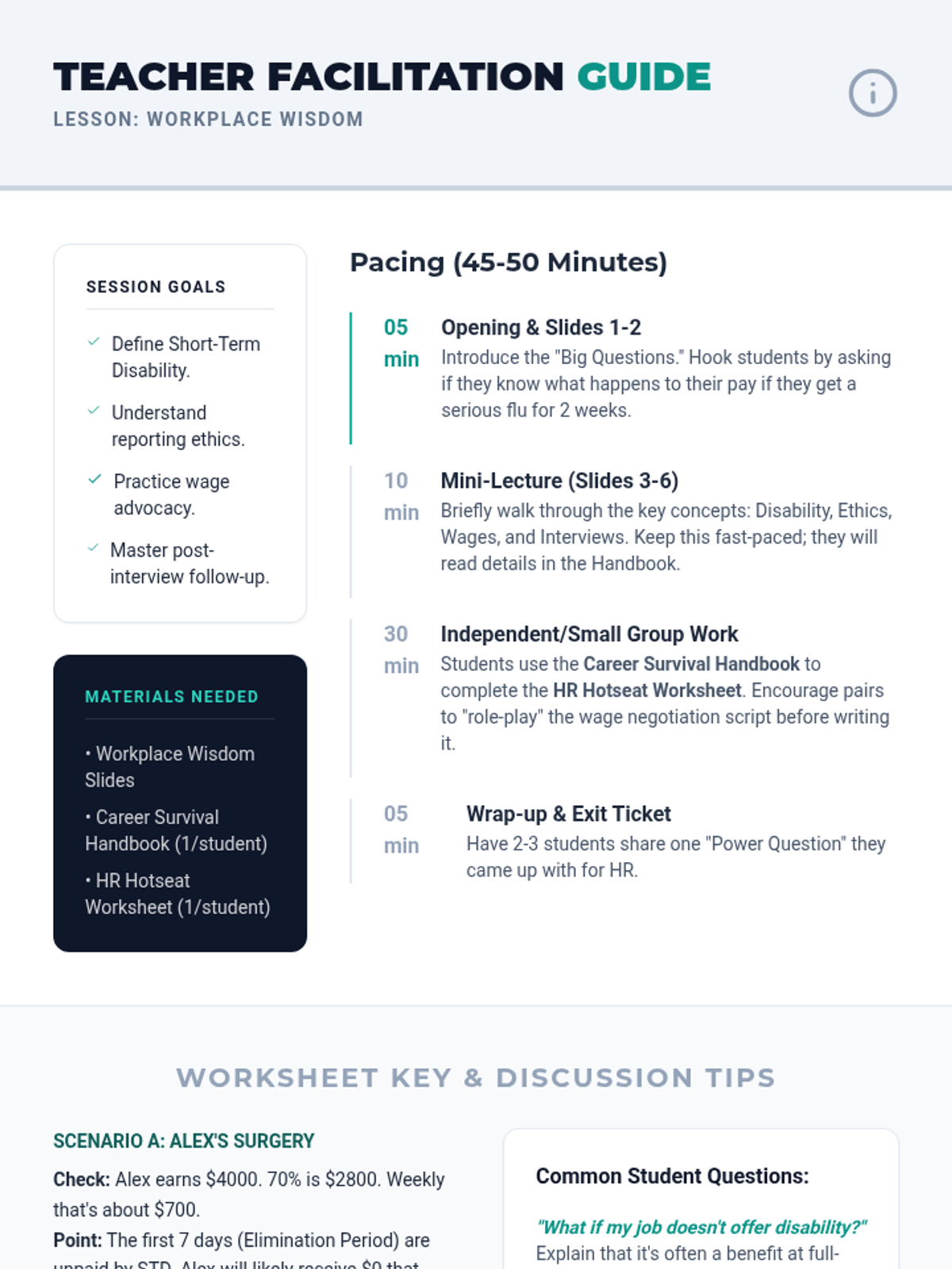 A comprehensive lesson on workplace rights, ethics, and self-advocacy, covering disability benefits, wage negotiation, and professional communication.