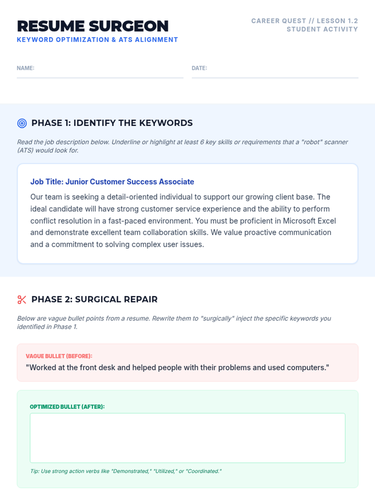A workshop-style lesson where students use audit data to re-engineer their STAR stories, turning their weakest answers into their strongest narratives.