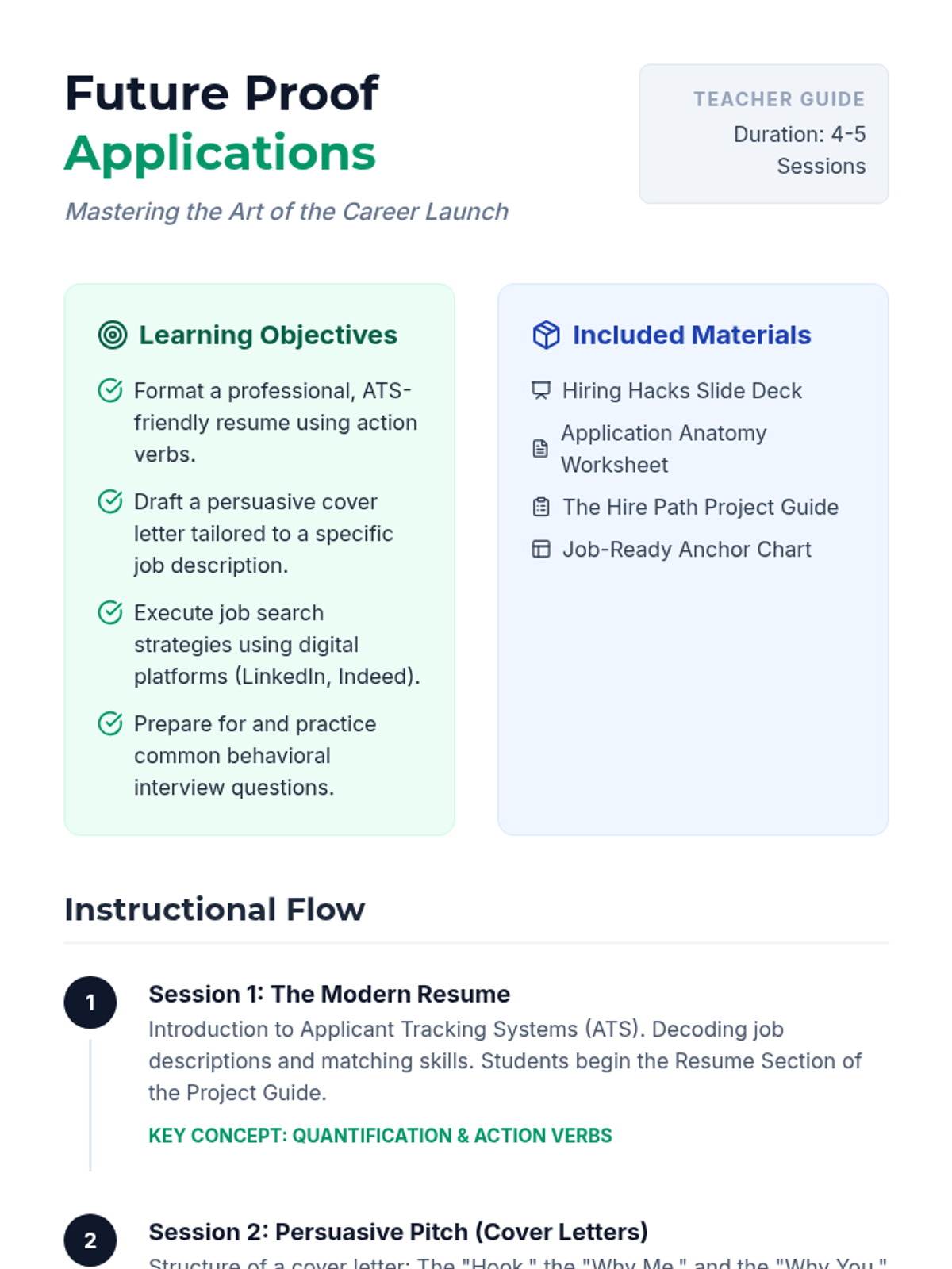 A comprehensive unit on mastering the job application process, from crafting the perfect resume and cover letter to nailing the interview and navigating job search platforms.