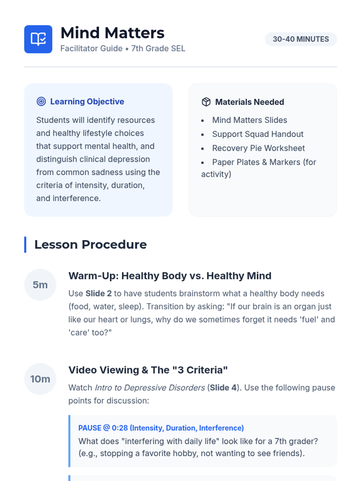 Understanding Anxiety SymptomsPhysical, emotional, and cognitive manifestations of anxiety across different age groups. Examines the body's physiological stress response and identifies behavioral red flags in academic or social settings.