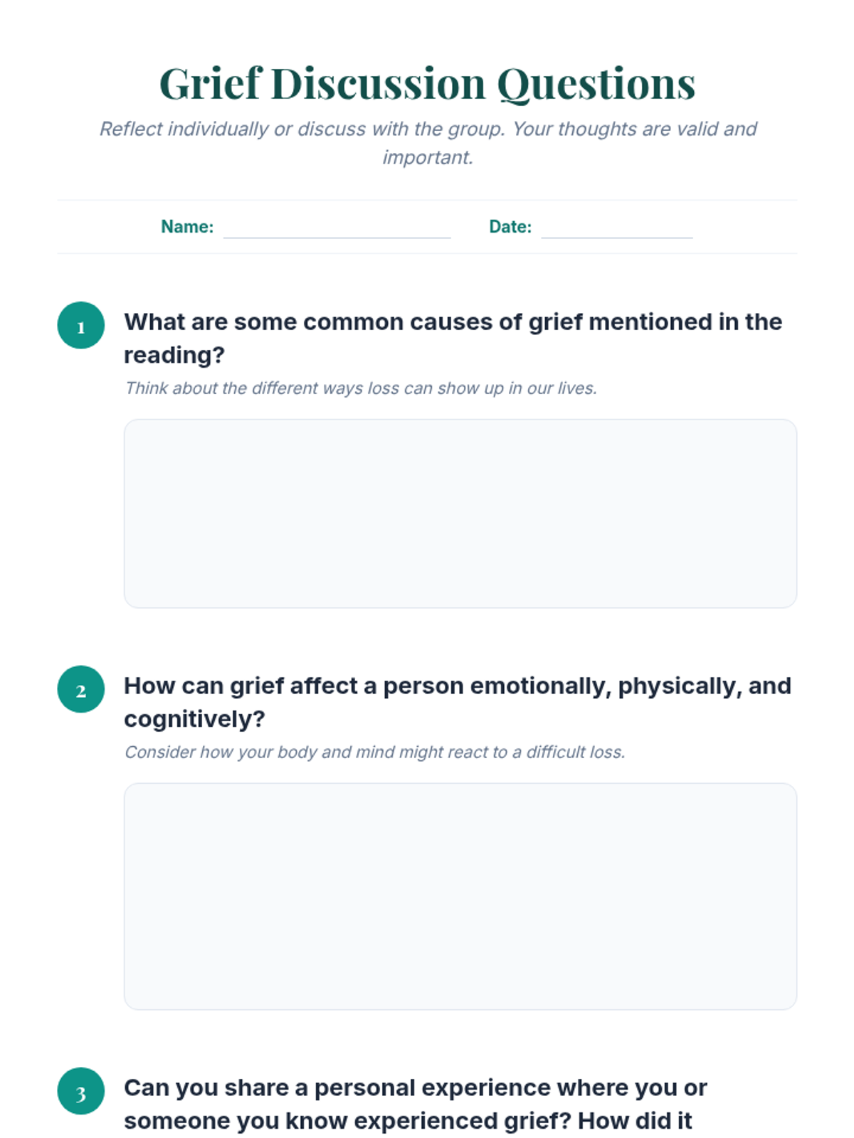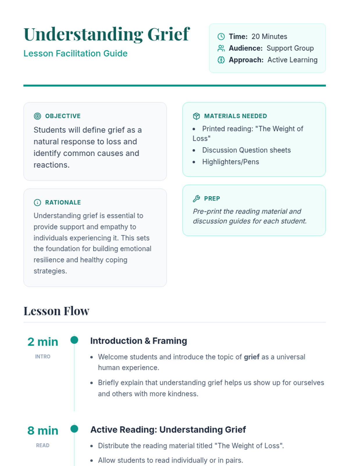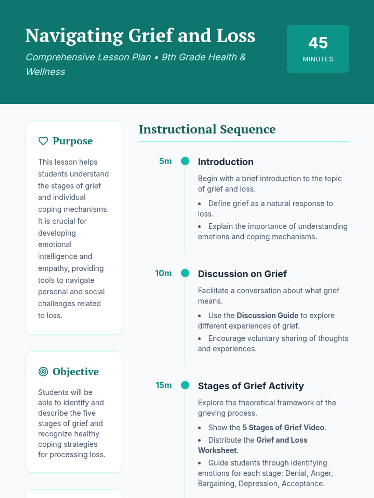 Healthy Grief CopingEmotional regulation techniques and resilience-building strategies for navigating the stages of grief. Equips learners with practical tools for processing loss and supporting others through bereavement.