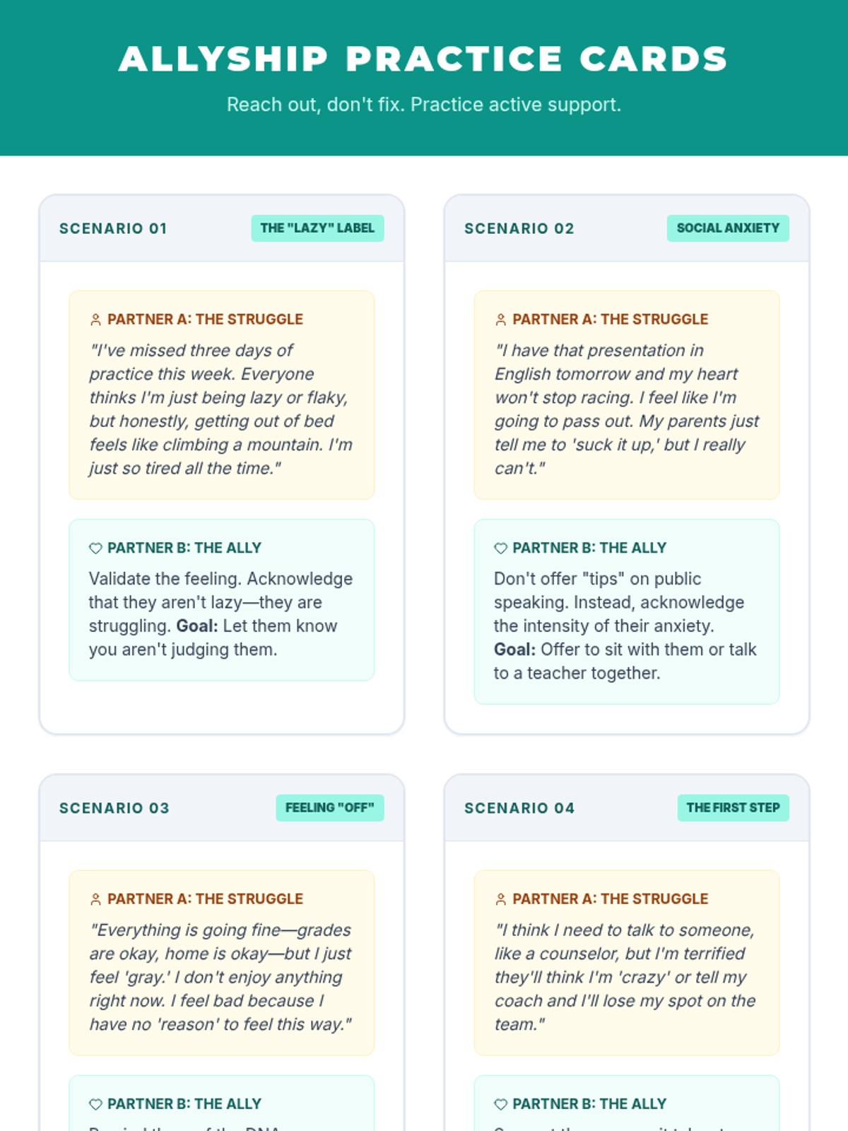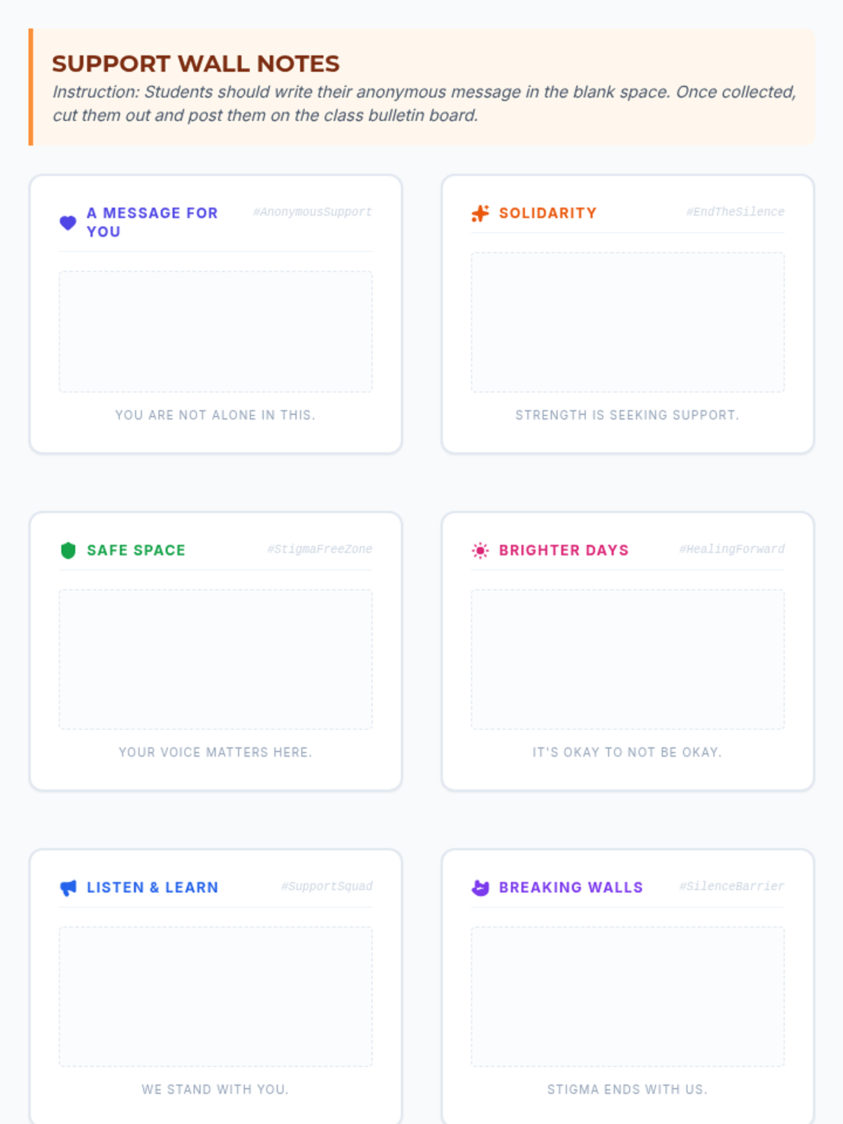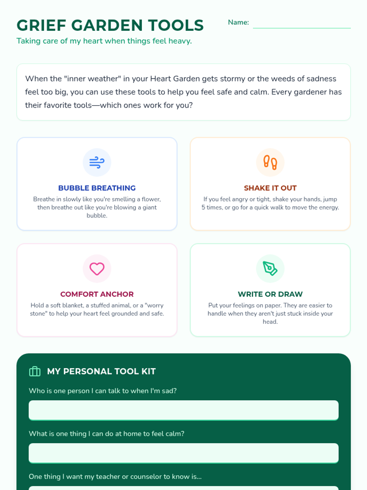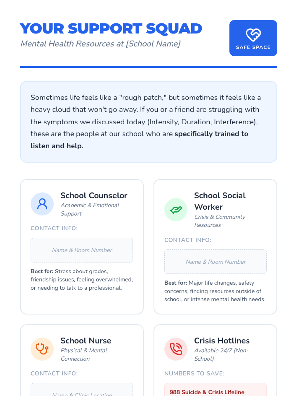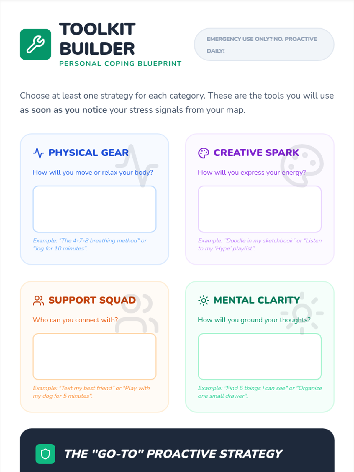 Students identify and select three specific, safe actions they can take to build their own mental 'Coping Kit' for difficult days.