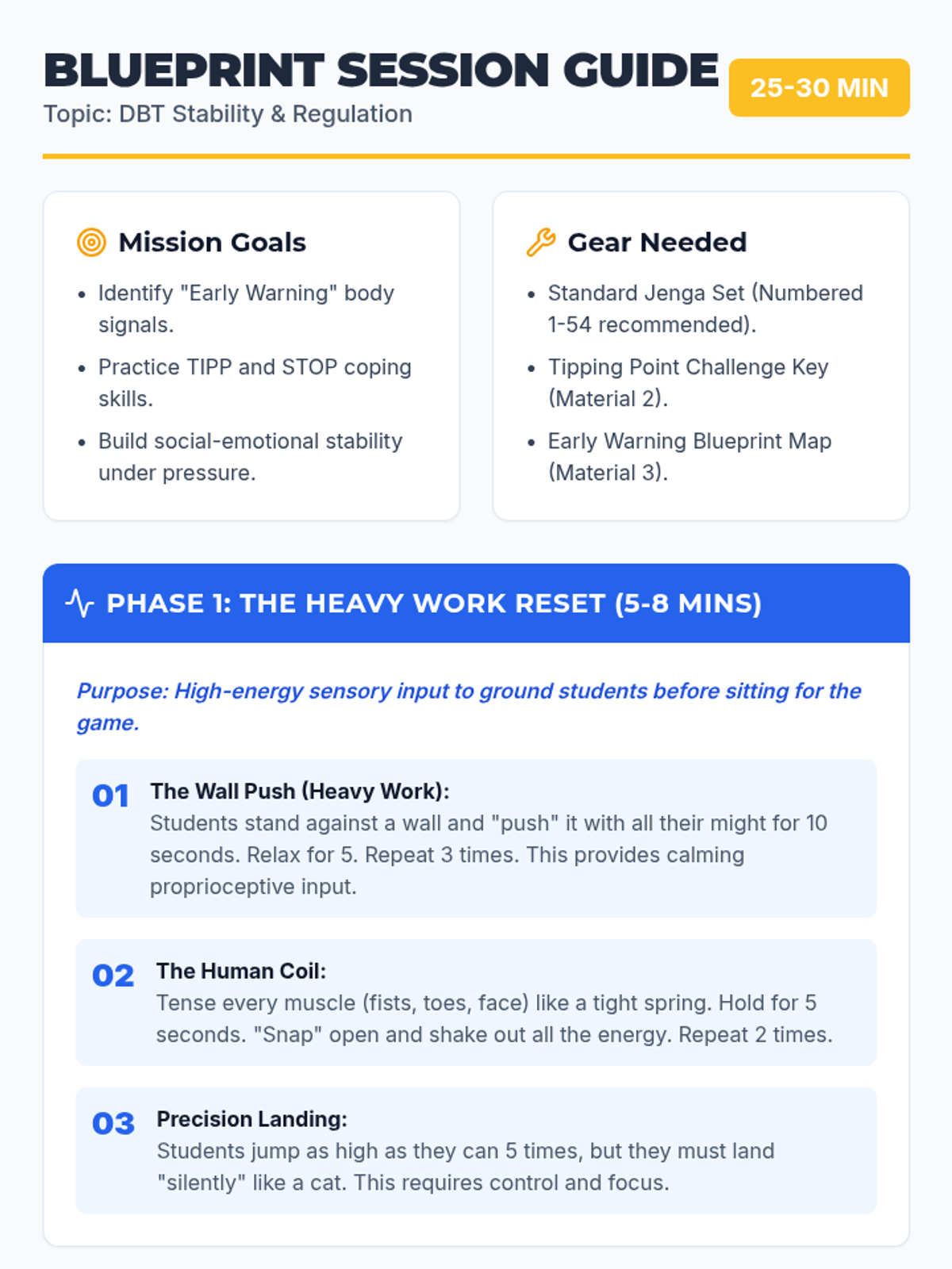 Students identify emotional barriers ('The Wall') and practice breaking large tasks into 'Ladders' or small, manageable steps.
