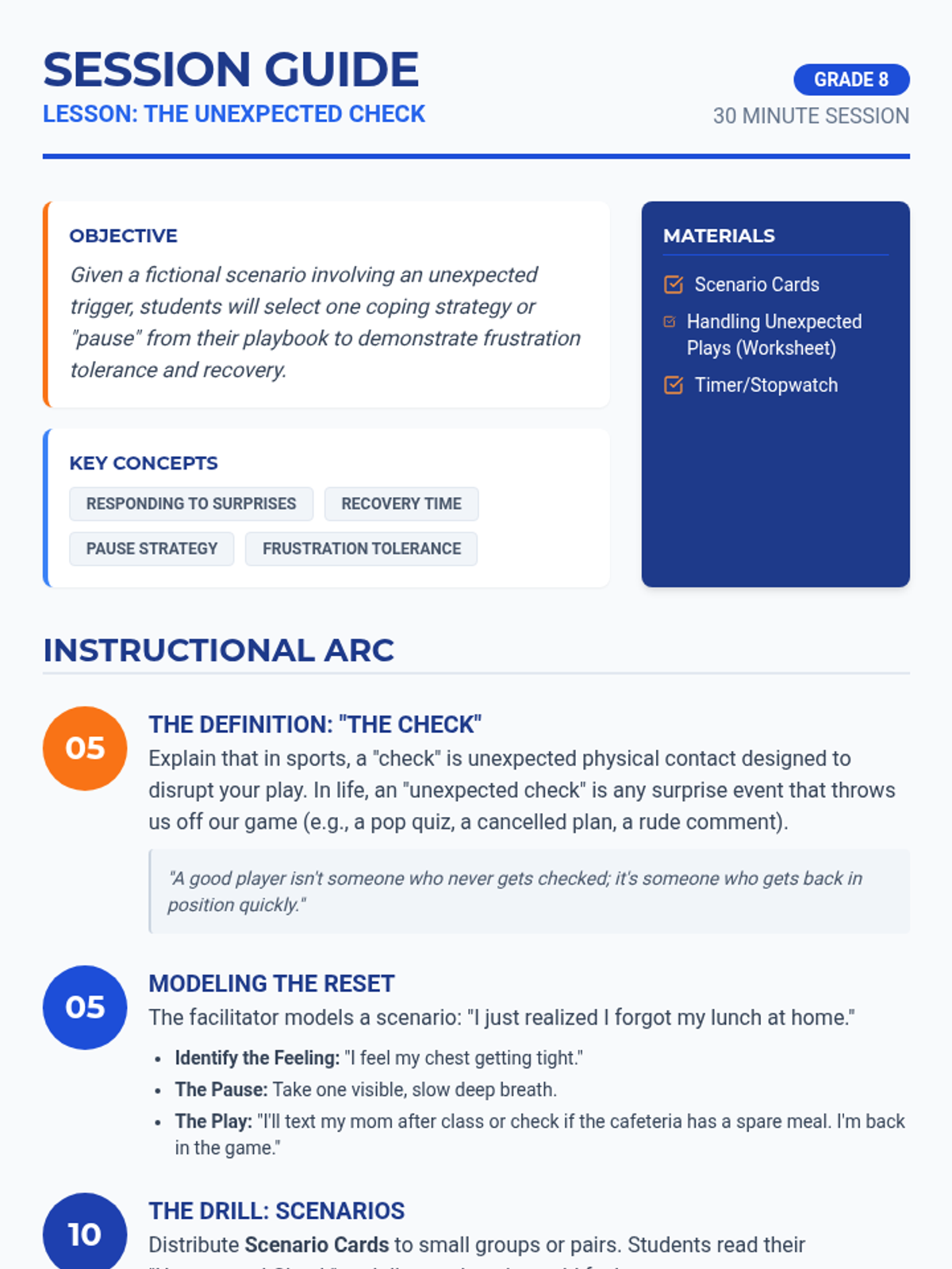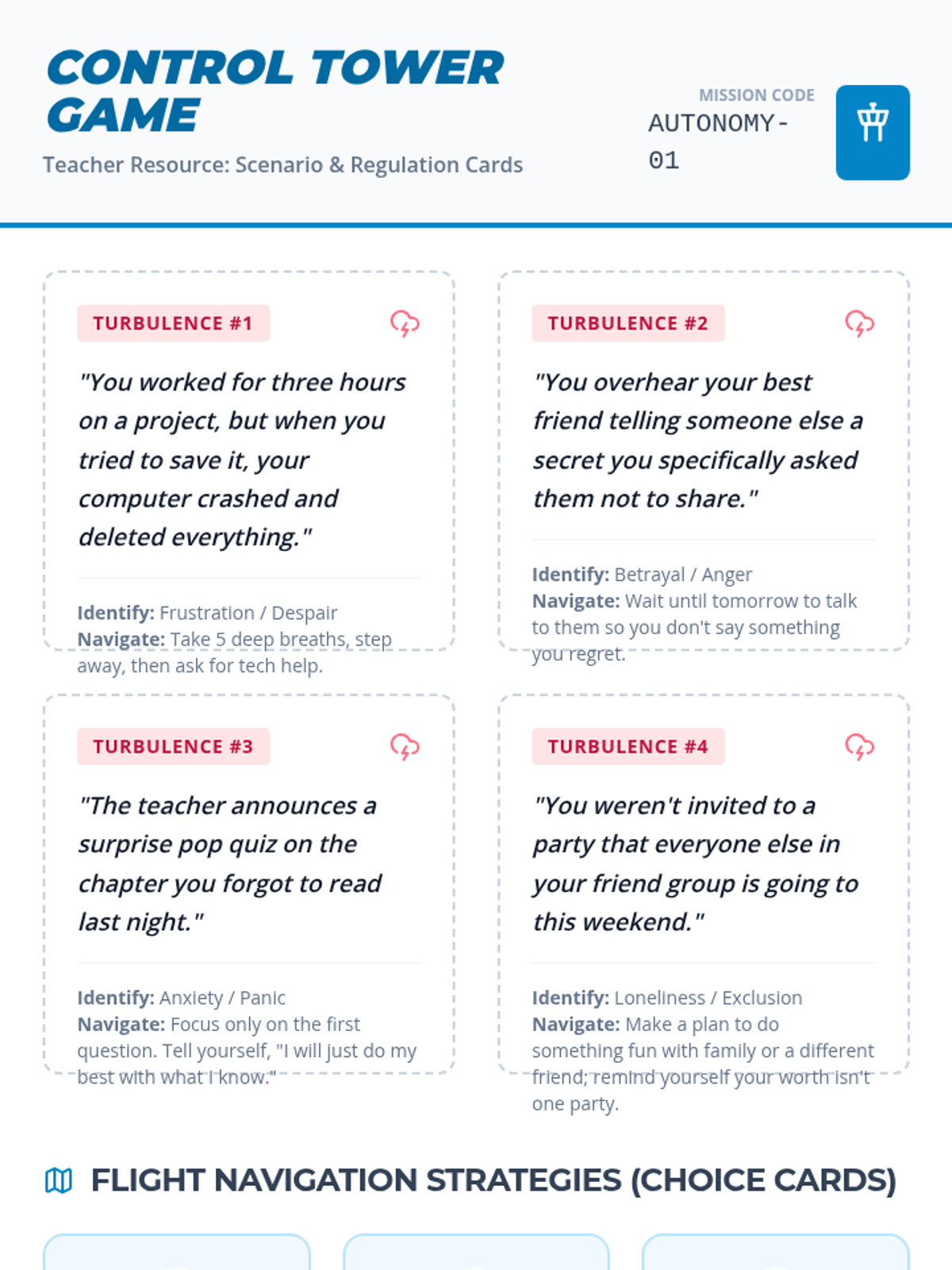 Focuses on emotional regulation and the shift from panic to problem-solving, identifying healthy coping strategies for real-life challenges.