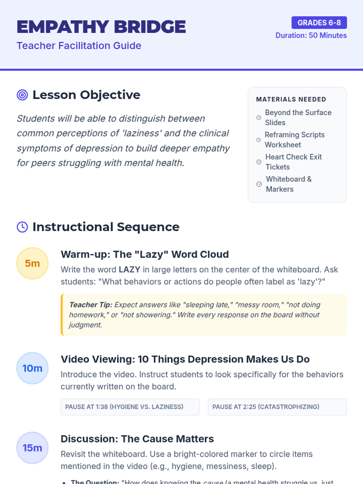 A comprehensive lesson designed for 7th grade students to identify and shift away from co-dependent 'trauma bonding' behaviors toward healthy, resilient friendship boundaries. It focuses on the 'both can be true' philosophy—acknowledging hard things while maintaining individual emotional ownership.