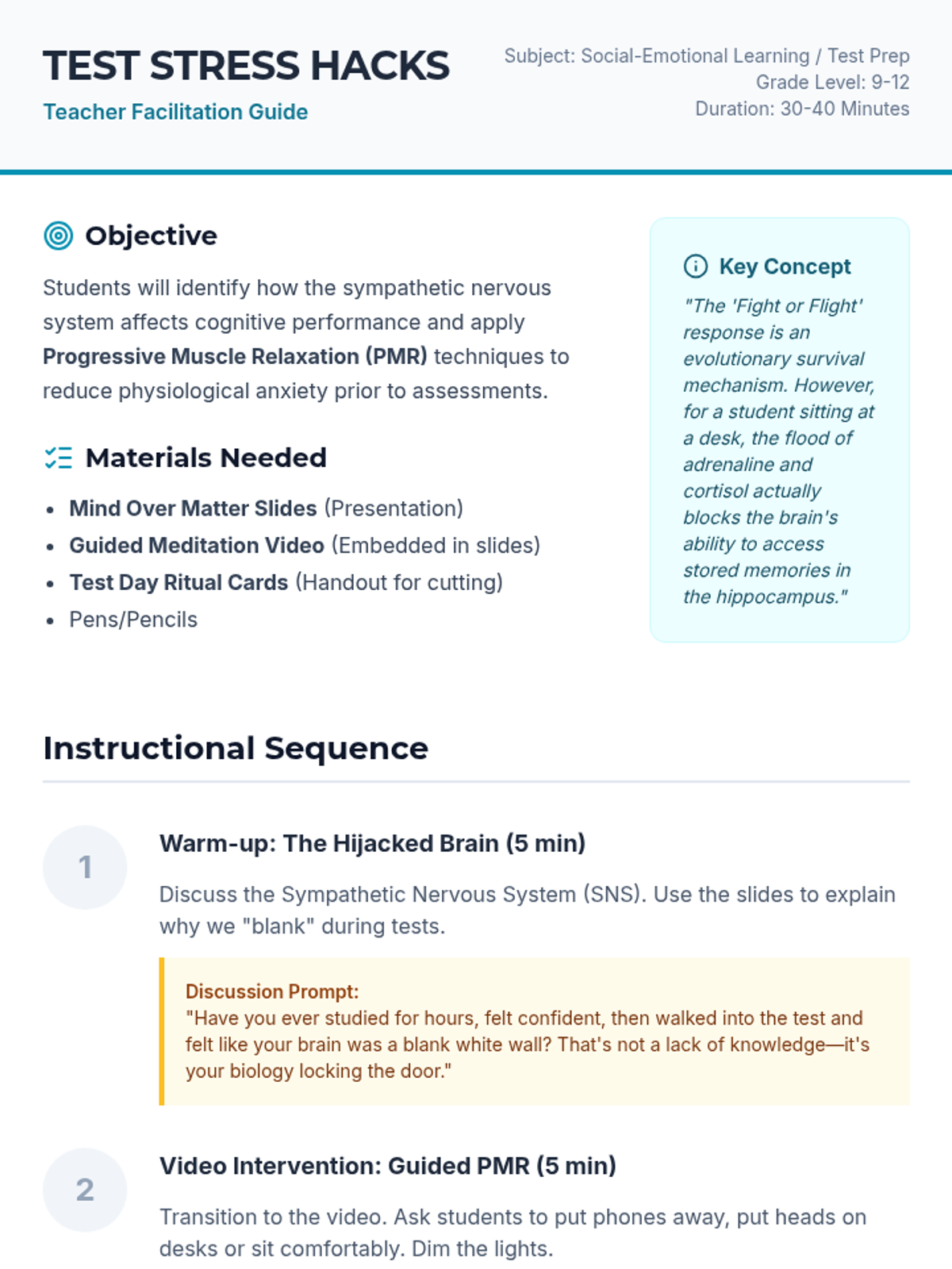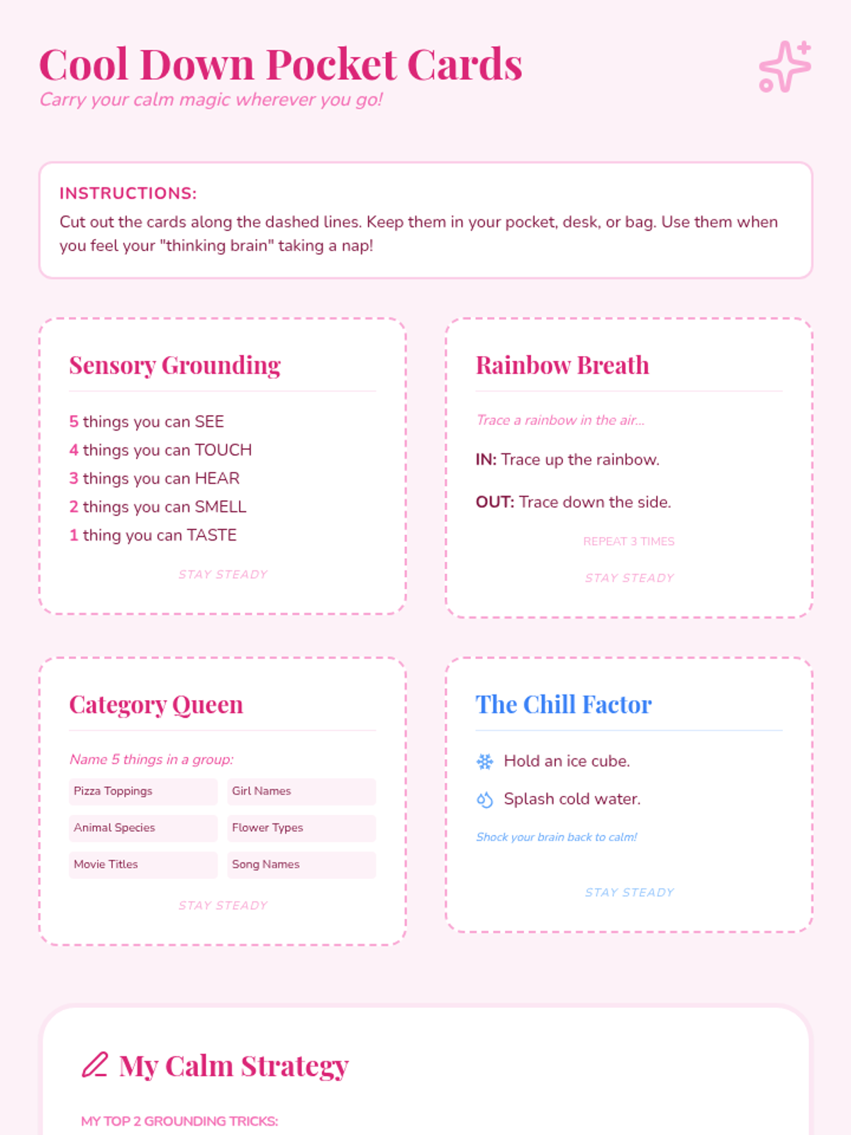 A comprehensive toolkit designed for students struggling with extreme perfectionism, anxiety, ADHD, and auditory processing challenges. This lesson provides visual-first strategies to manage school-based stress, break down overwhelming tasks, and build self-compassion through creative activities.