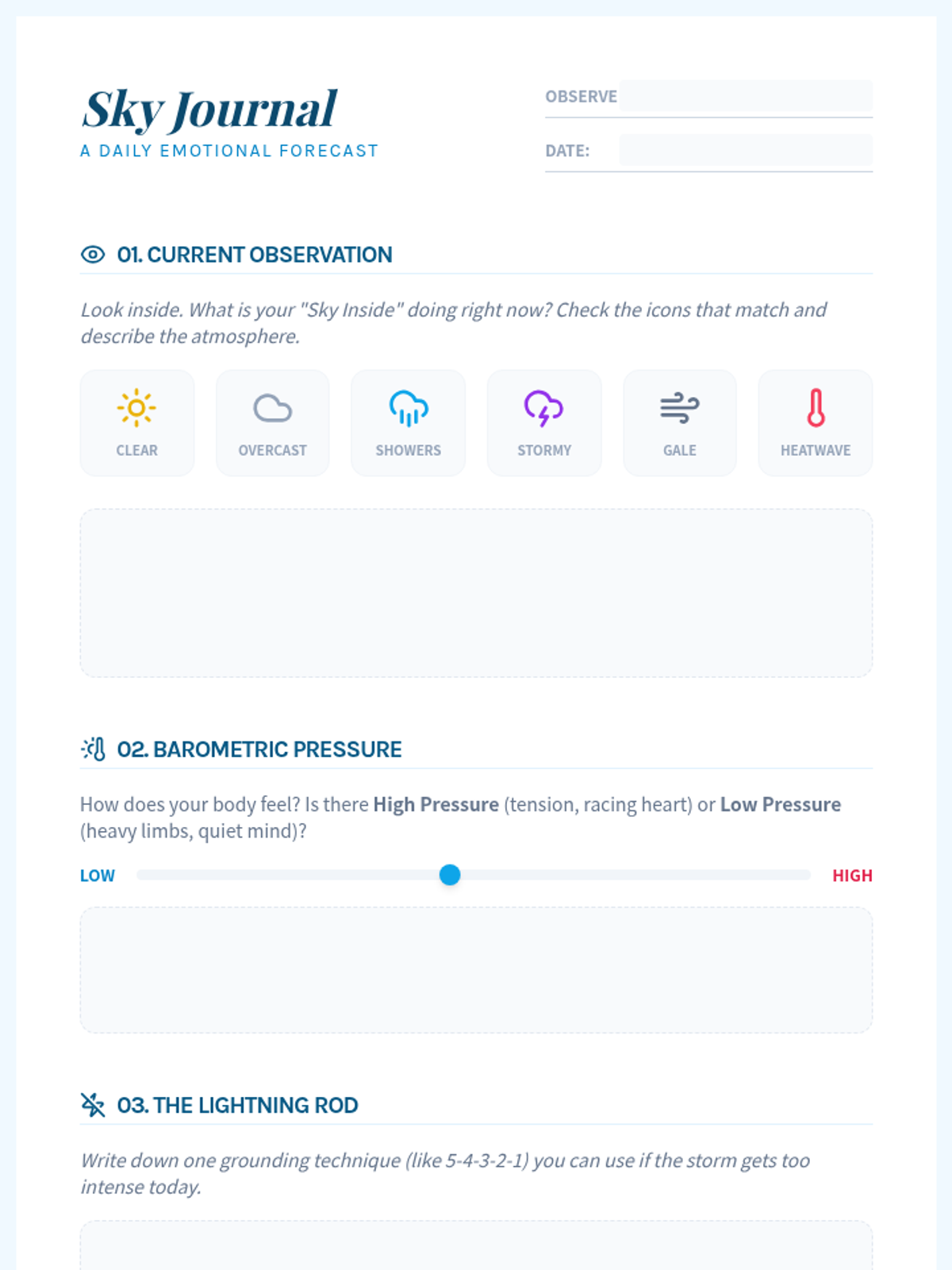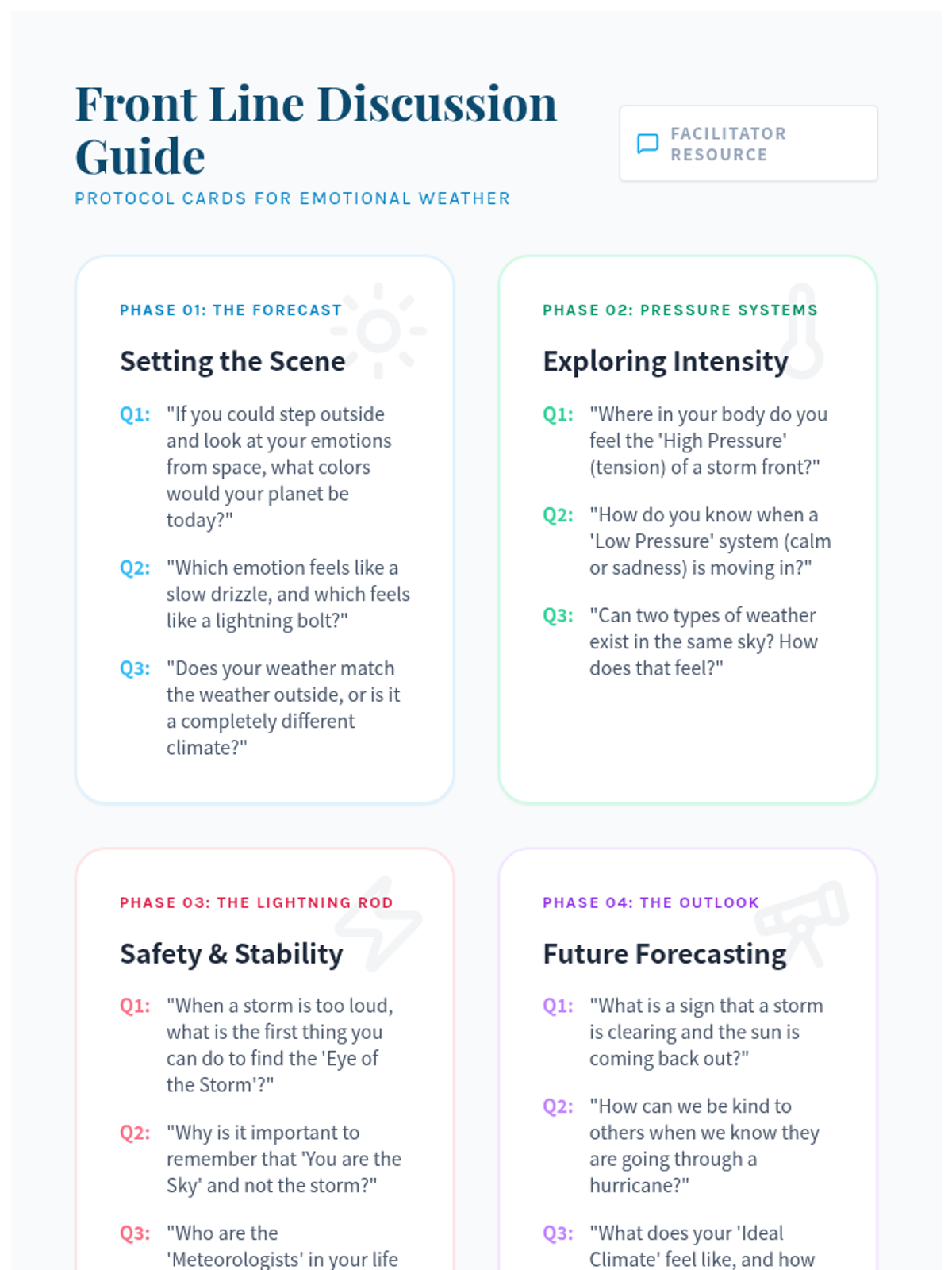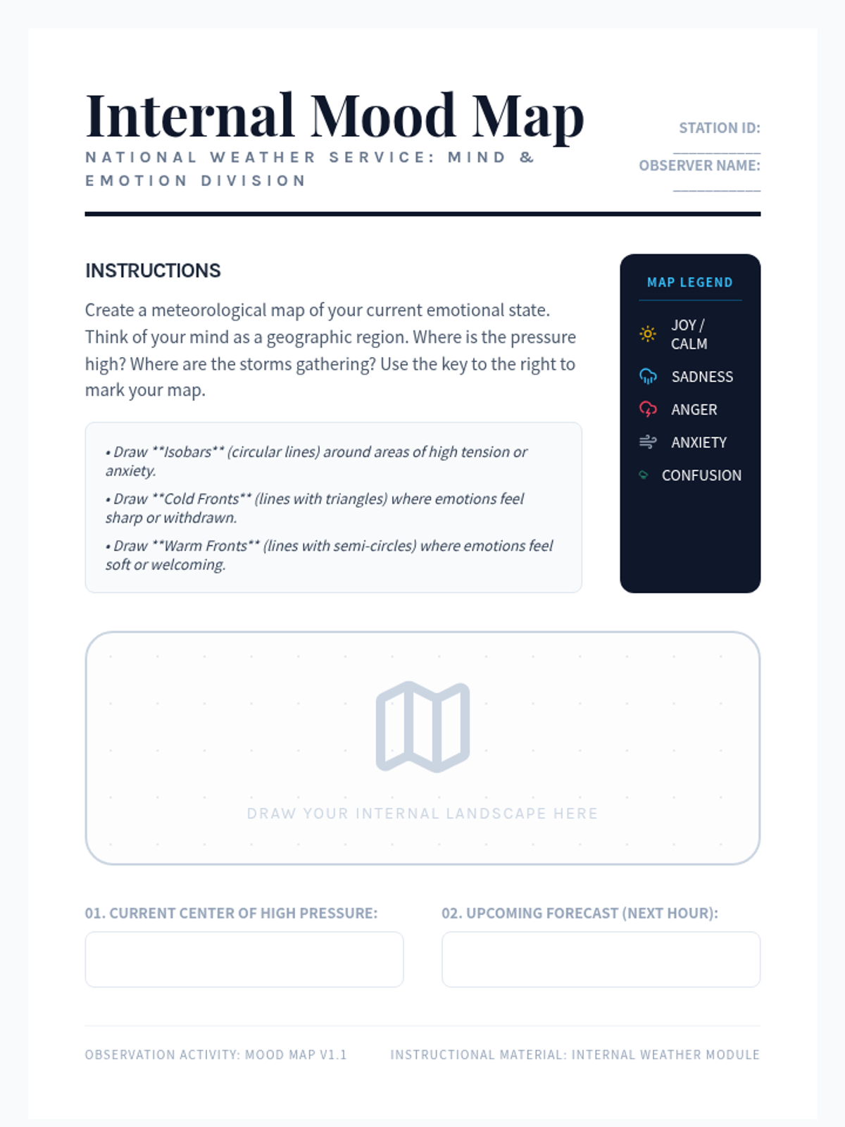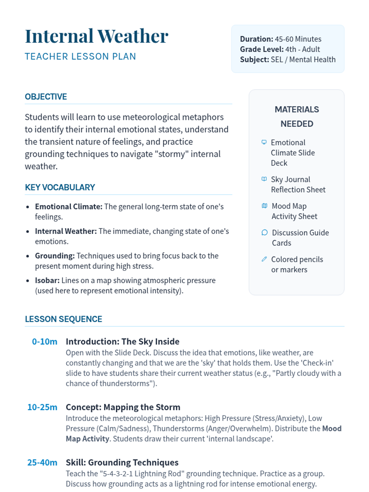 A social-emotional learning lesson that uses weather metaphors to help students identify, track, and regulate their emotions through 'internal forecasting' and grounding techniques.