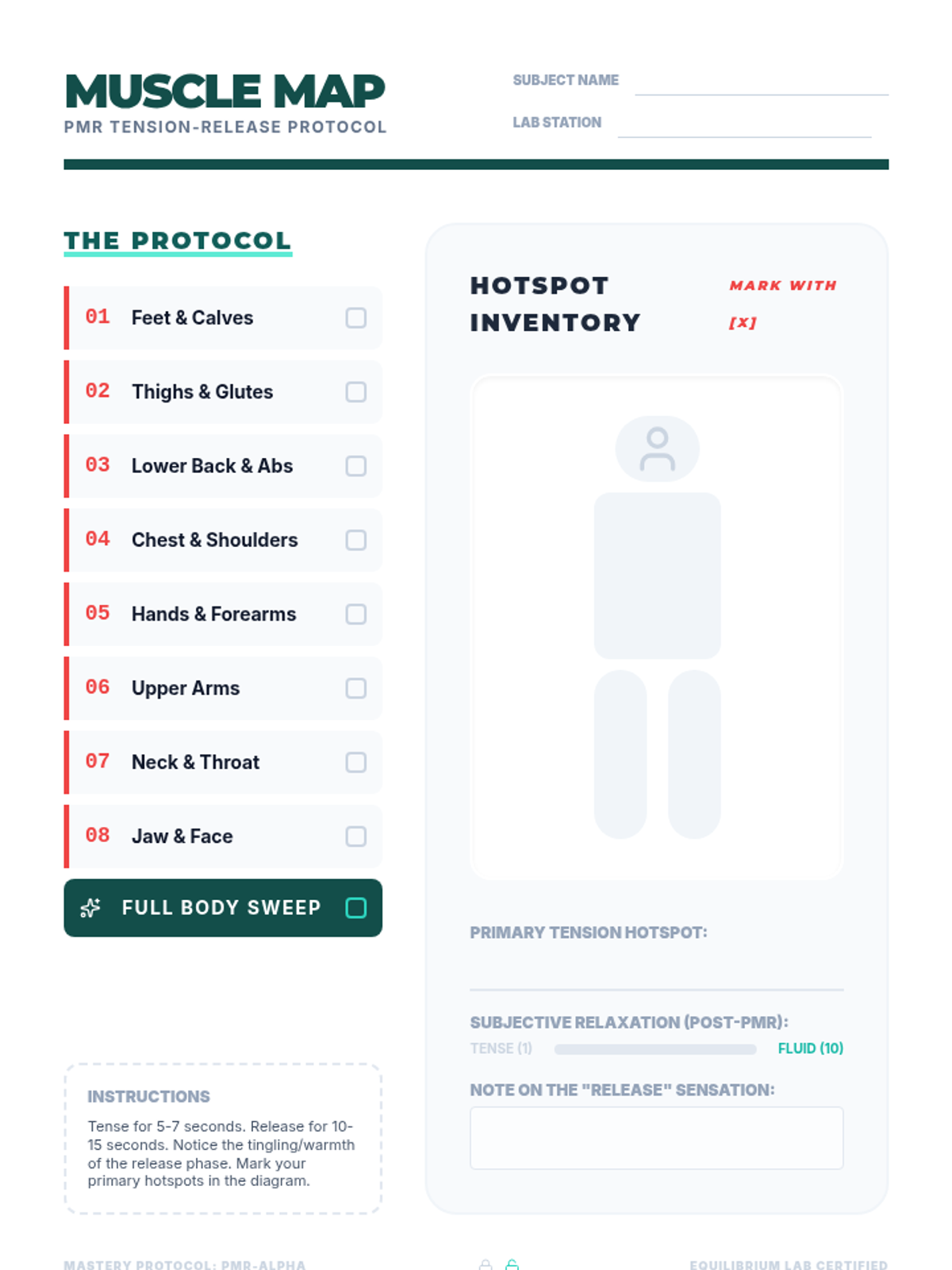 Students condense the full PMR session into 60-second and 10-second versions. They simulate high-stress environments to practice deploying these rapid techniques effectively.