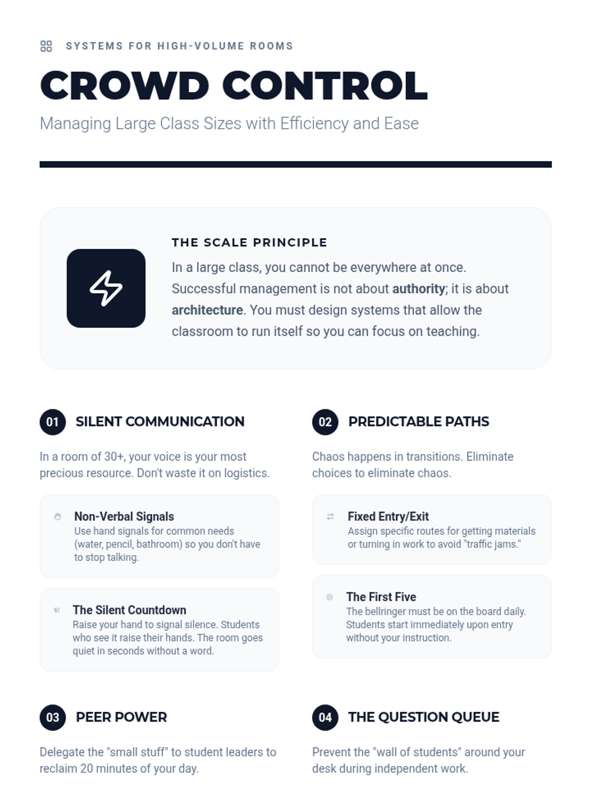 A lesson focusing on the transition from a few teachers to many, understanding the benefits and challenges of multiple classrooms, and mastering the complex waterfall drop schedule.