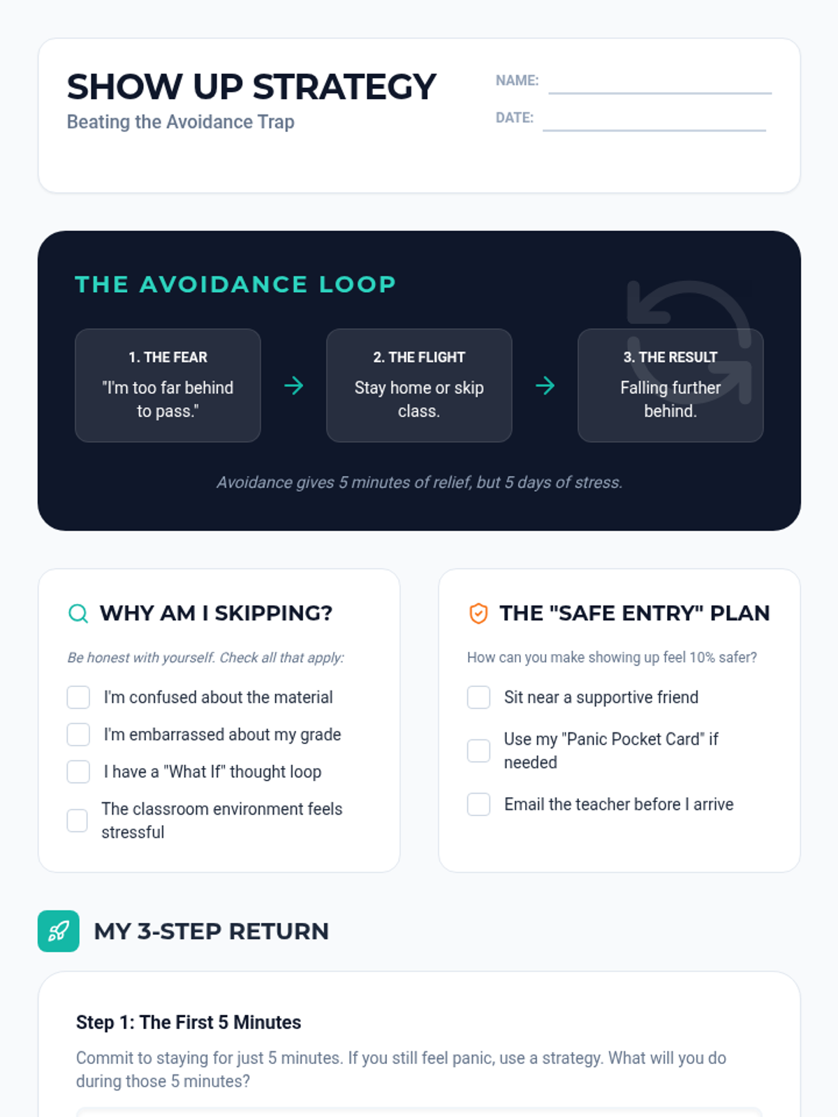 A supportive series of 1:1 sessions and tools designed to help a student regain academic momentum after a period of injury and depression, focusing on energy management and low-friction starts.