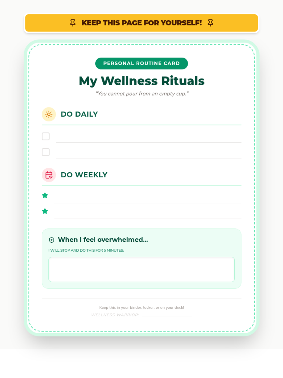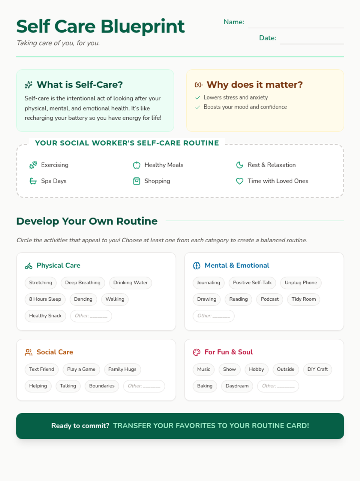 A quick and engaging lesson designed to help middle school students understand the importance of self-care and develop their own personalized routines for mental and physical well-being.