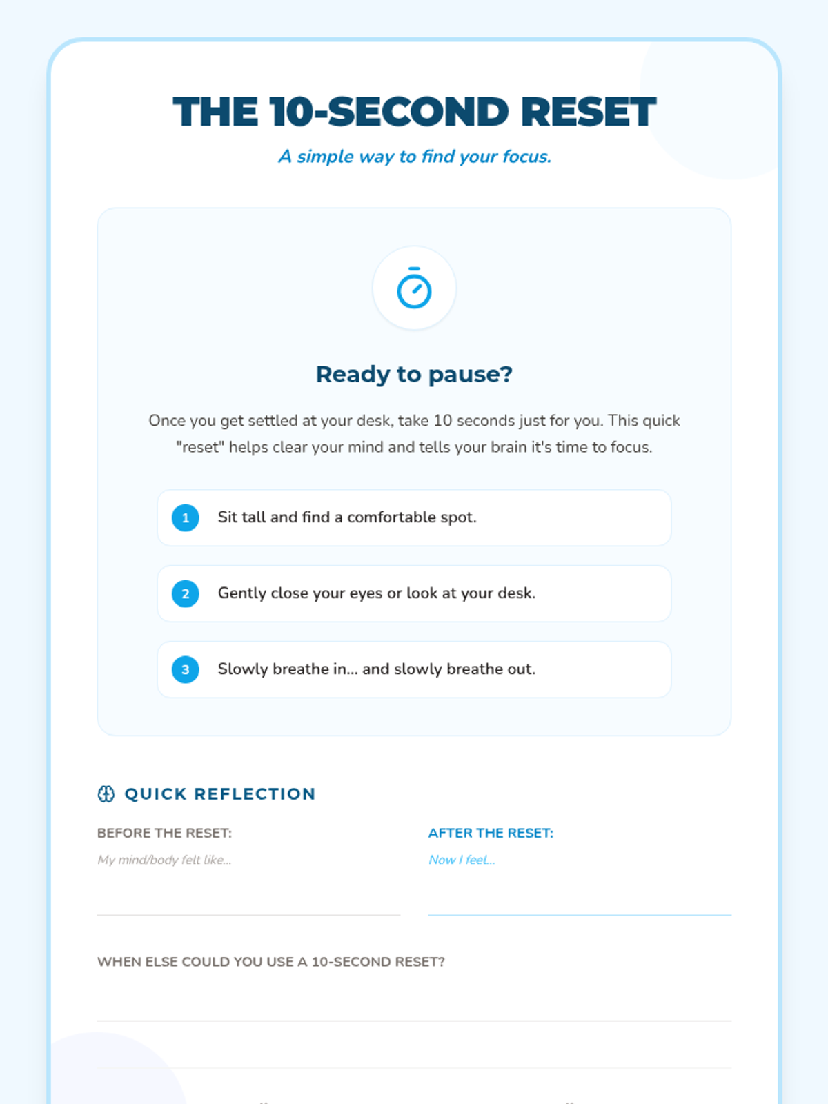 In this culminating lesson, students create a personal 'Bounce-Back Plan' emergency card. They identify three specific actions they can take when feeling low to build resilience and autonomy.