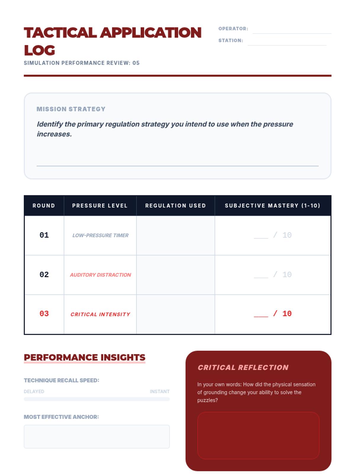 A culminating simulation where students face timed cognitive challenges while practicing their chosen regulation techniques. This bridges the gap between knowing a technique and using it under pressure.