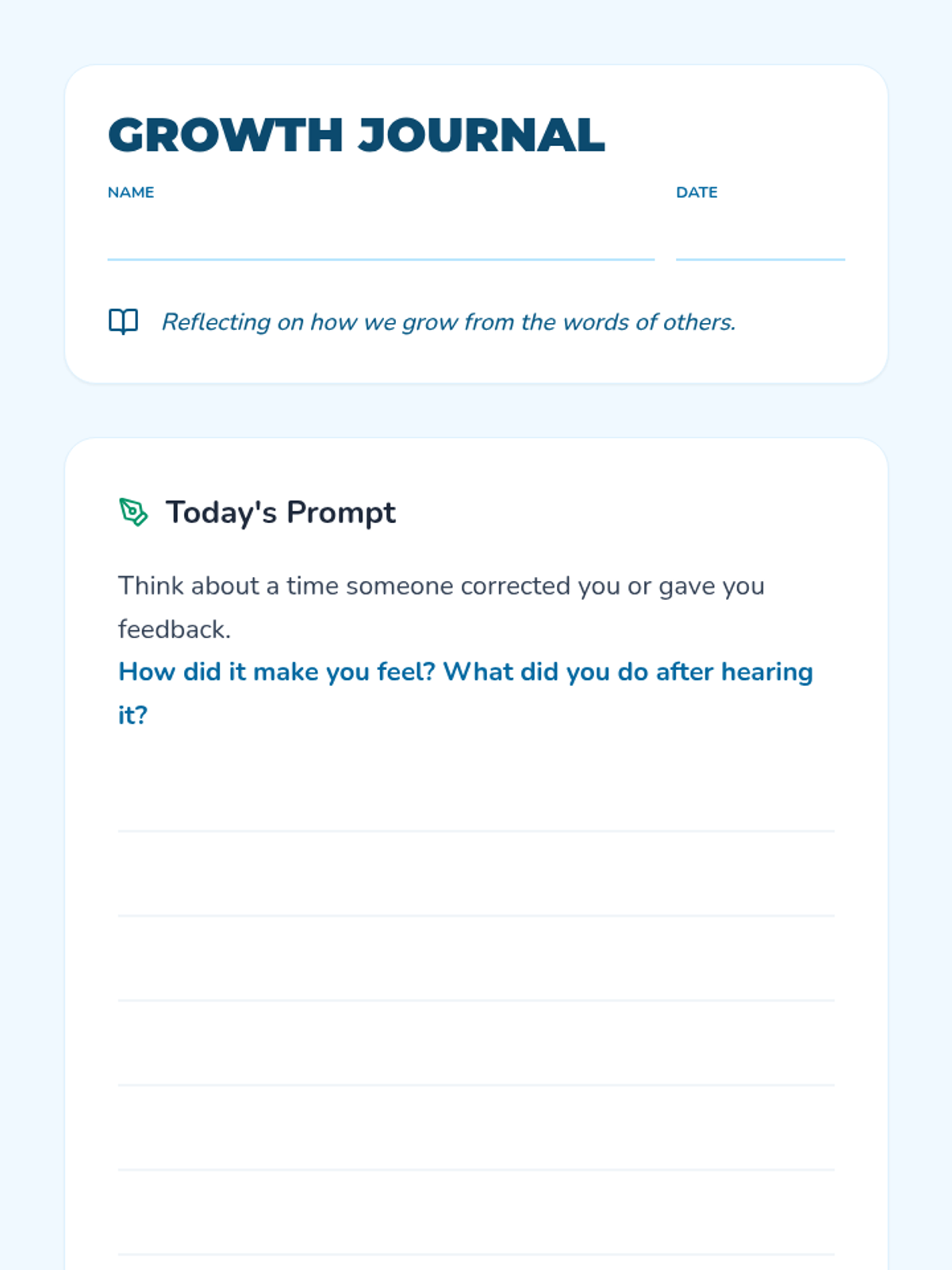This lesson focuses on detaching self-worth from academic critique, practicing objective responses to harsh feedback and adopting a growth mindset toward evaluation.