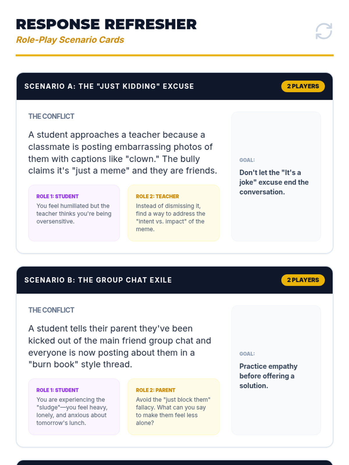 A specialized workshop for teenagers to develop empathy, emotional intelligence, and de-escalation skills for navigating social and academic environments.