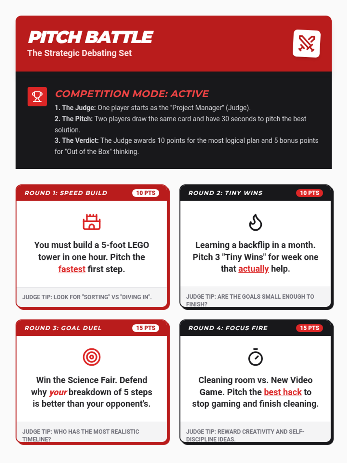 Students evaluate and pitch various organizational tools, from digital apps to paper checklists, learning to match specific scaffolds to different brain types.