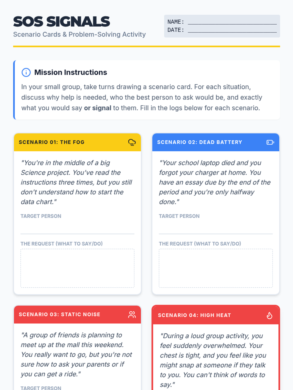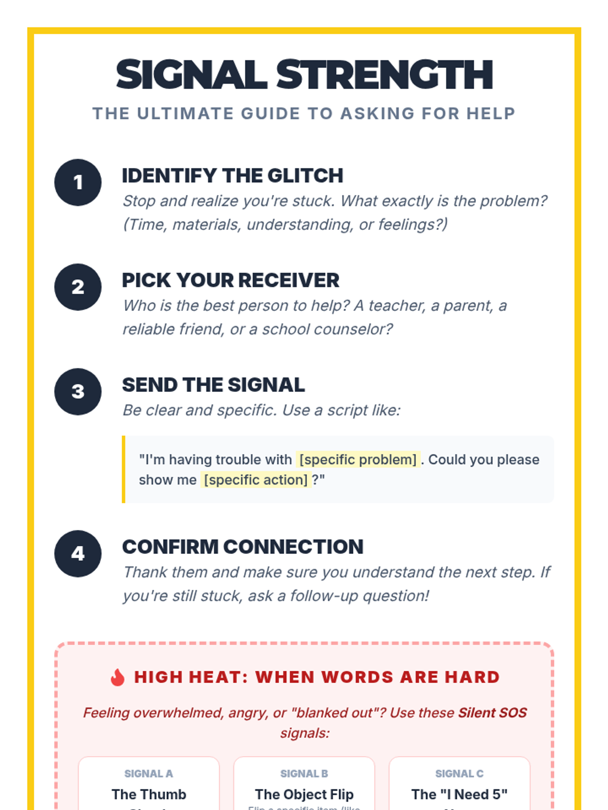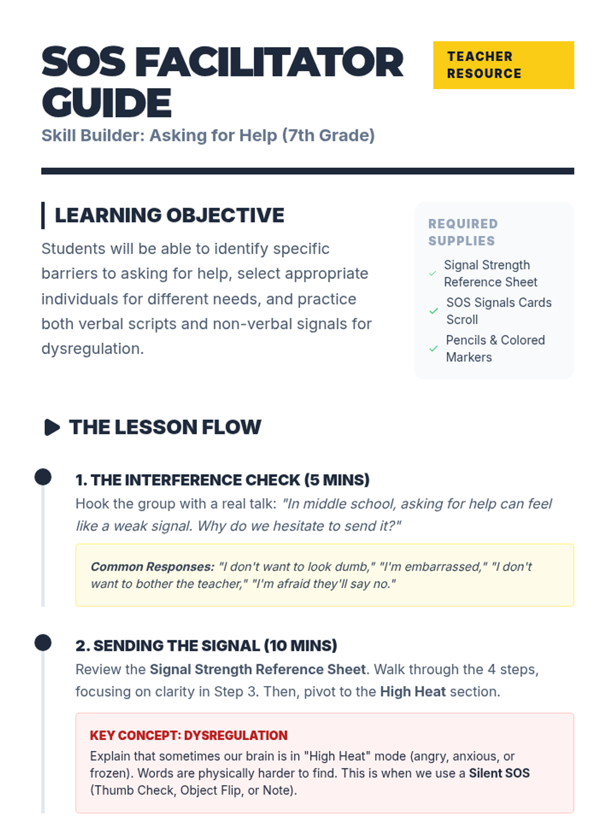 A small group intervention lesson designed to help 7th graders identify when they need help and practice the specific language required to ask for it effectively.
