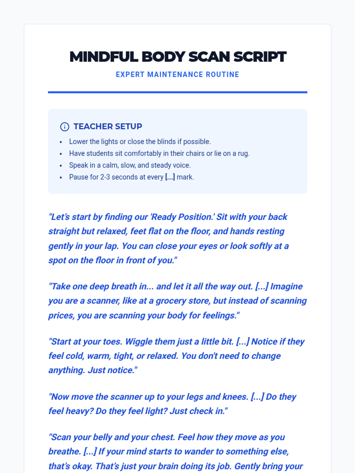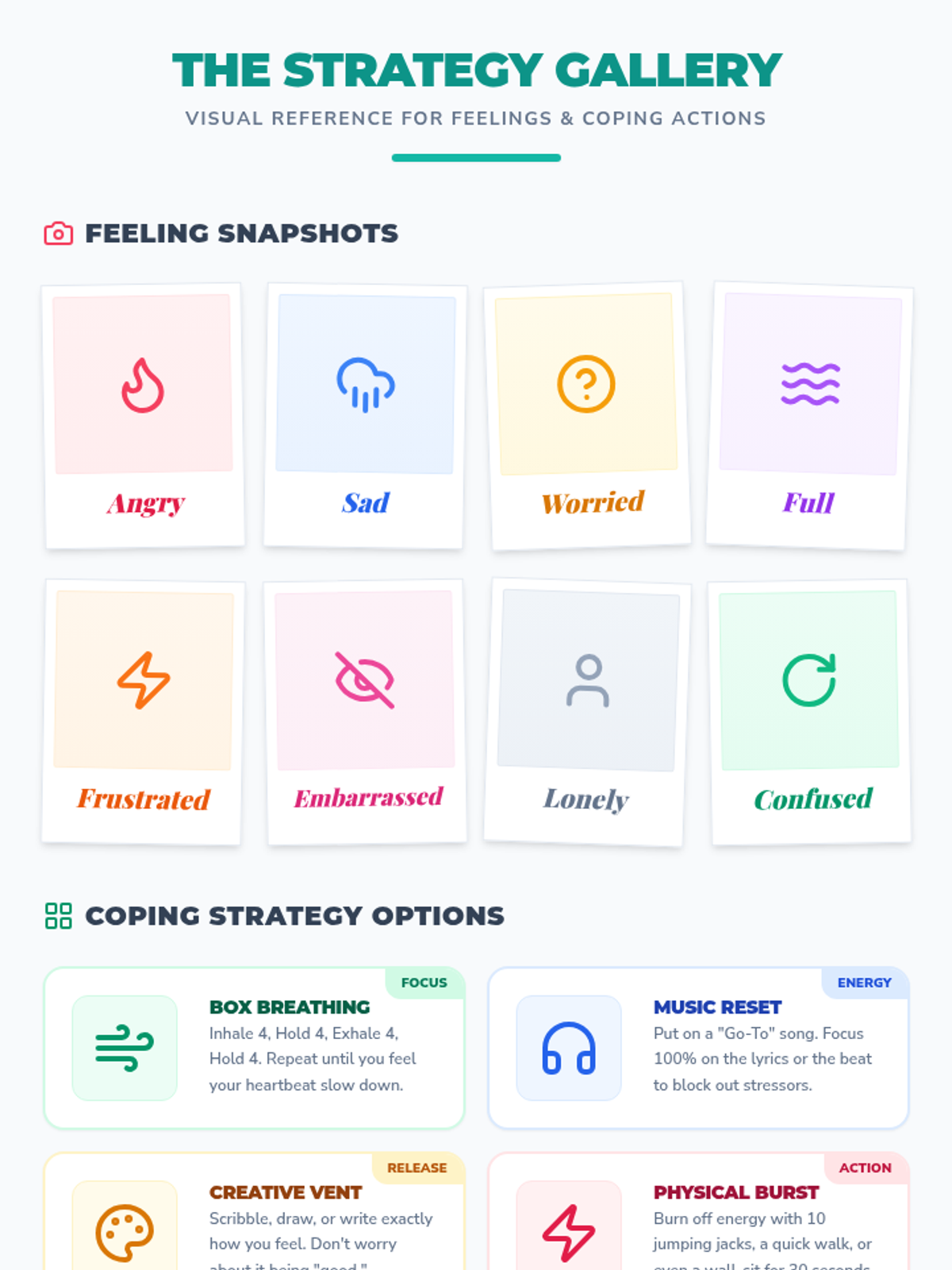 Complex Emotion LabelingNuanced emotional identification techniques that go beyond basic categories like happy or sad. Builds emotional literacy and self-regulation by connecting physiological cues to specific affective labels.