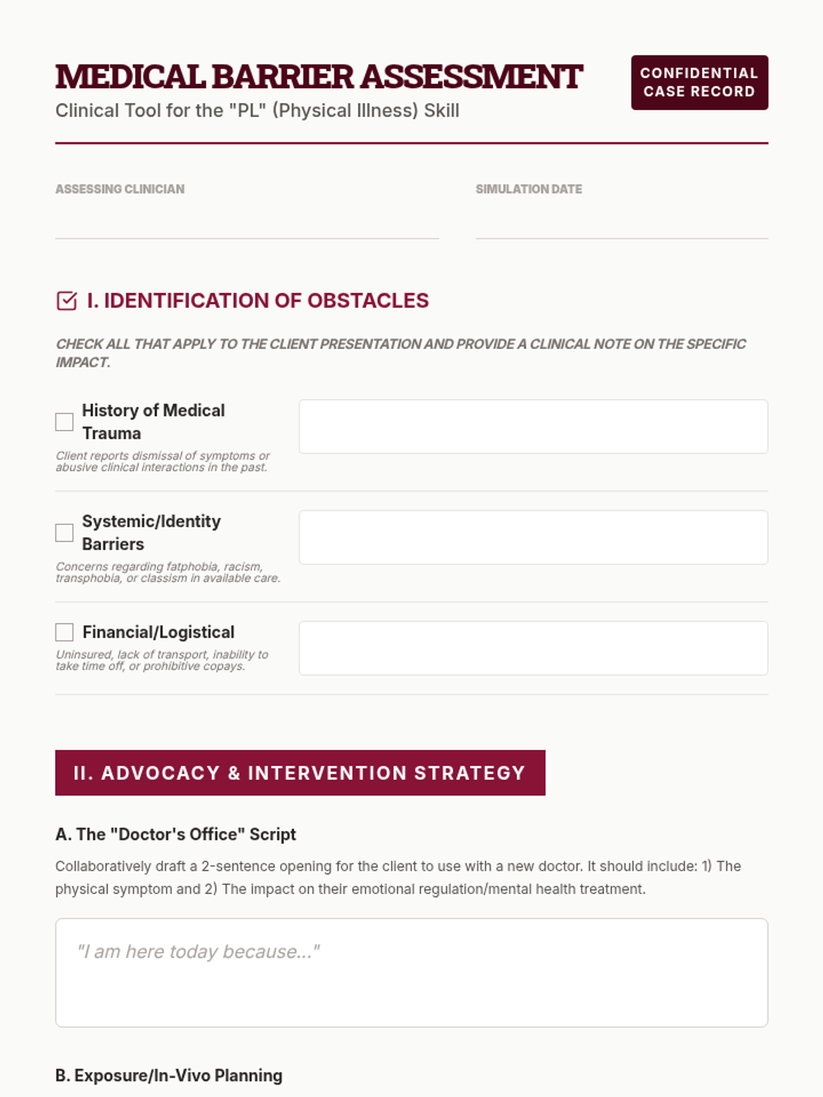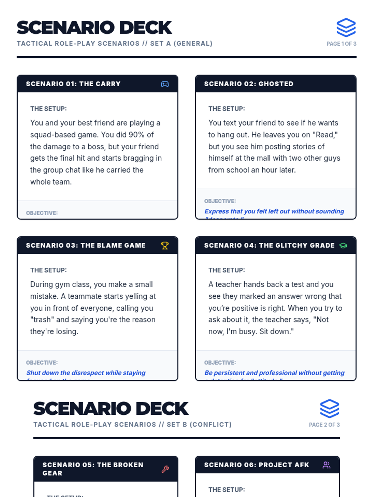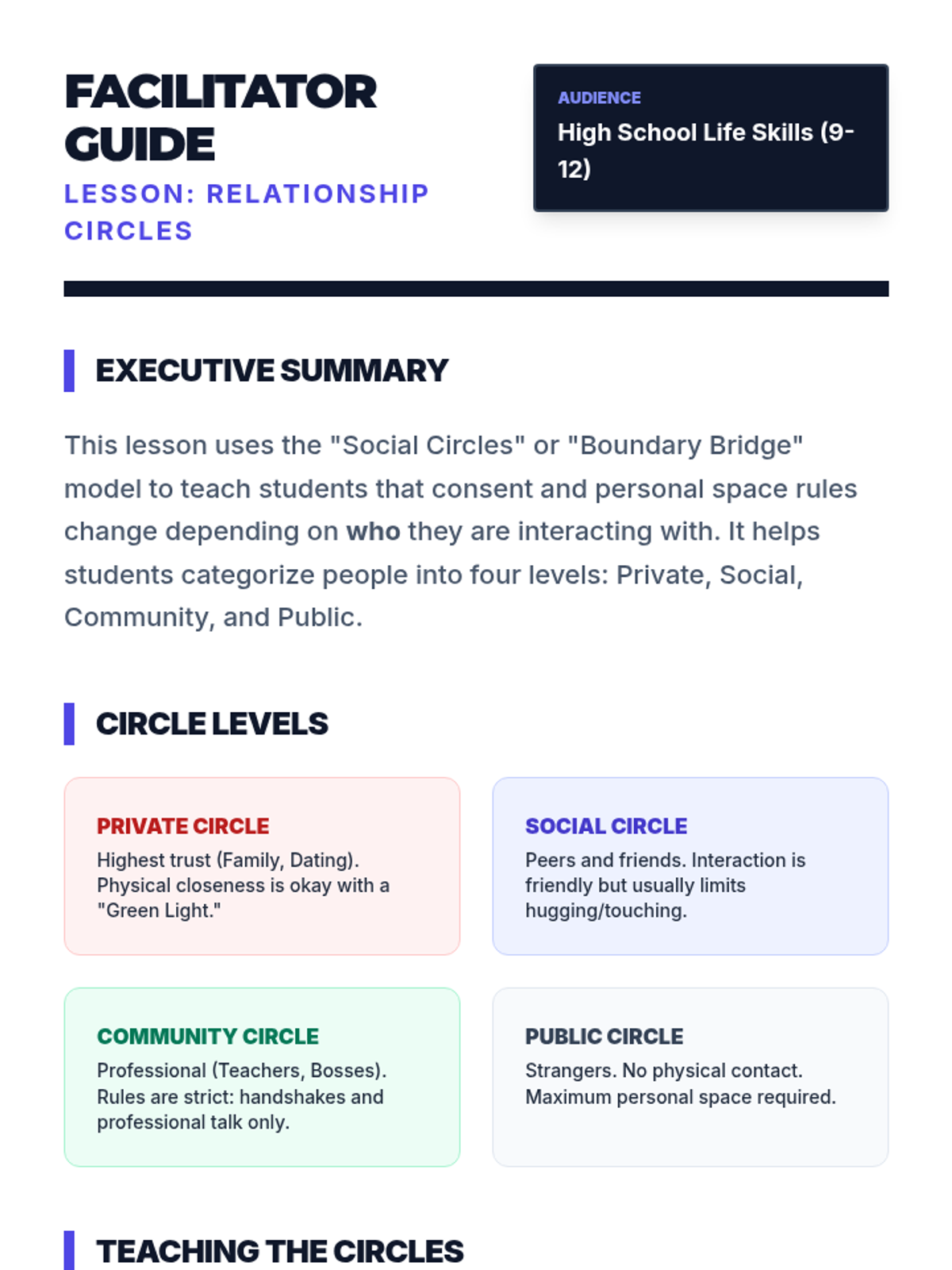 Counseling & Life SkillsSelf-AwarenessBasic Emotion RecognitionComplex Emotion IdentificationEmotional Nuance & Mixed FeelingsBuilding Positive Self-ImageRecognizing Strengths & Growth AreasAccurate Self-AssessmentPersonal Values IdentificationCultural & Individual Identity ExplorationValues-Based Decision MakingSelf-ManagementStop-and-Think StrategiesDelaying GratificationIndependent Impulse ManagementIdentifying Stress TriggersShort-Term Goal SettingSMART Goals DevelopmentGoal Monitoring & AdjustmentBuilding Perseverance & ResilienceInternal Motivation DevelopmentComprehensive Stress Reduction PlanningSocial AwarenessRecognizing Others' FeelingsDemonstrating EmpathyRespecting Individual DifferencesUnderstanding Cultural DiversityComplex Empathetic ResponsesMultiple Viewpoint ConsiderationMulti-Perspective AnalysisChallenging Stereotypes & BiasRelationship SkillsActive ListeningClear Verbal & Nonverbal CommunicationBuilding Positive FriendshipsWorking Cooperatively in GroupsCommunicating Personal BoundariesRespecting Others' BoundariesAssertive ExpressionPeaceful Problem-SolvingContributing to Team GoalsComplex Conflict NavigationMediation & NegotiationHealthy Romantic RelationshipsResponsible Decision-MakingDaily Problem IdentificationBrainstorming Multiple SolutionsEvaluating Pros & ConsRecognizing Risks & ConsequencesApplying Ethical FrameworksInformed Risk-Benefit DecisionsRoot Cause AnalysisMindfulnessMindful BreathingBody Scan MeditationDaily Mindfulness ApplicationDaily Self-Care RoutinesBalancing Life DemandsAdvocating for Wellness NeedsMental Health SupportUnderstanding Anxiety SymptomsWorry Management StrategiesProgressive Muscle RelaxationRecognizing Depression SignsBuilding Mood-Supporting RoutinesBehavioral Activation for MoodUnderstanding Grief StagesHealthy Grief CopingCreative Expression of LossBehavioral SupportDaily Check-In ProceduresDaily Goal Setting & ReviewRecognizing Escalation Warning SignsRequesting Breaks & SupportSelf-Calming During DistressUnderstanding Positive ReinforcementToken Economy ImplementationBehavior Chart TrackingAnalyzing Behavior PatternsIdentifying Antecedents & ConsequencesDetermining Behavior FunctionFunction-Based InterventionsIndividualized Behavior ContractsData-Driven Behavior AdjustmentTherapeutic ApproachesThoughts-Feelings-Behaviors ConnectionRecognizing Thinking PatternsChallenging Negative ThoughtsPositive Self-Talk PracticeThought Record TrackingAdvanced Cognitive RestructuringComprehensive CBT PlansBehavioral Activation TechniquesBuilding Positive ExperiencesExposure Hierarchies for AnxietyPresent-Moment AwarenessNon-Judgmental ObservationSelf-Soothing & DistractionComplex Emotion LabelingReducing Emotional Vulnerability (PLEASE)DEAR MAN CommunicationGIVE Skills for RelationshipsFAST Skills for Self-RespectRadical Acceptance PracticeCrisis Survival Skills (TIPP)Understanding Trauma EffectsTrauma Responses & TriggersIdentifying Trauma FeelingsGrounding TechniquesRegulation During Trauma DistressSafe Place VisualizationProcessing Through NarrativeDeveloping Trauma StoryPersonalized Safety PlanningGroup SupportTurn-Taking & SharingGroup Conversation SkillsSharing in Supportive EnvironmentLearning from Similar ChallengesBuilding Community & BelongingNavigating Peer RelationshipsGroup Skill PracticeGroup Mental Health EducationStress & Anxiety UnderstandingCrisis Support & SafetyKnowing When to Seek HelpIdentifying Mental Health CrisesGrounding During CrisisUsing Crisis HotlinesBuilding Support NetworksAccessing Mental Health ResourcesWarning Signs & Coping StrategiesDeveloping Personal Safety PlansUnderstanding Suicide Warning SignsGatekeeper Skills for PeersDigital LiteracySocial MediaTechnology BasicsProductivity ToolsInternet and Online ResearchWeb Design and PublishingDigital CitizenshipOnline Safety and PrivacyEmerging TechnologiesFinancial LiteracyMaking Financial DecisionsBanking and AccountsConsumer SkillsSaving and InvestingCredit and DebtEmployment and IncomeTaxesInsuranceMajor PurchasesEconomic ConceptsFinancial PlanningCollege & Post-Secondary PlanningCareer ExplorationUnderstanding Post-Secondary OptionsCollege Research & SelectionAdmission RequirementsCollege Application ProcessPersonal Statement WritingFAFSA CompletionScholarship Search & ApplicationsUnderstanding Student LoansContinuing Education PlanningInterview PreparationResearching EmployersCommon Interview QuestionsSTAR Method ResponsesProfessional Interview PresenceVirtual Interview SkillsInterview Follow-UpJob Search SkillsUnderstanding Job PostingsEffective Job Search StrategiesNetworking for OpportunitiesResume Writing BasicsAction Verbs & AchievementsTailoring Resumes to JobsCover Letter WritingProfessional ReferencesProfessional CommunicationBusiness Email EtiquettePhone & Voicemail ProfessionalismMeeting ParticipationPresentation SkillsProfessional Work EthicTime Management & ProductivityTeamwork & CollaborationAdaptability & FlexibilityProblem-Solving at WorkConstructive FeedbackWorkplace RightsUnderstanding Employment LawsPay & Benefits UnderstandingWorkplace SafetyAnti-Discrimination & Harassment