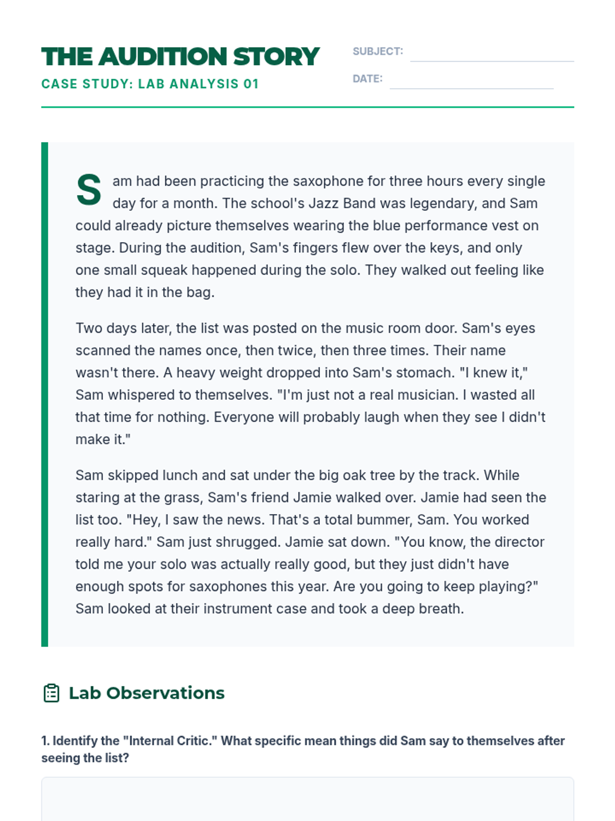 A comprehensive psychological screening tool designed to identify students at risk for destabilization during school transitions. This lesson provides a structured scoring rubric and staff training resources to ensure accurate assessment and tiered support planning.