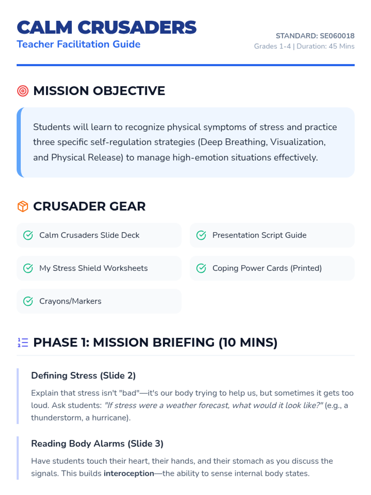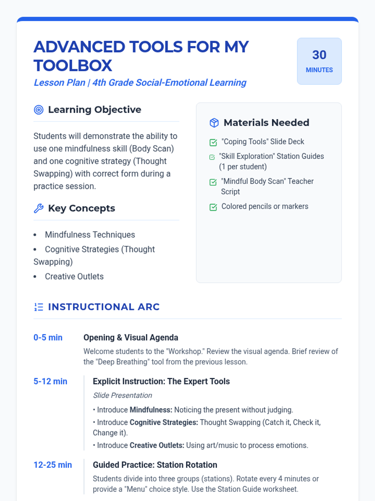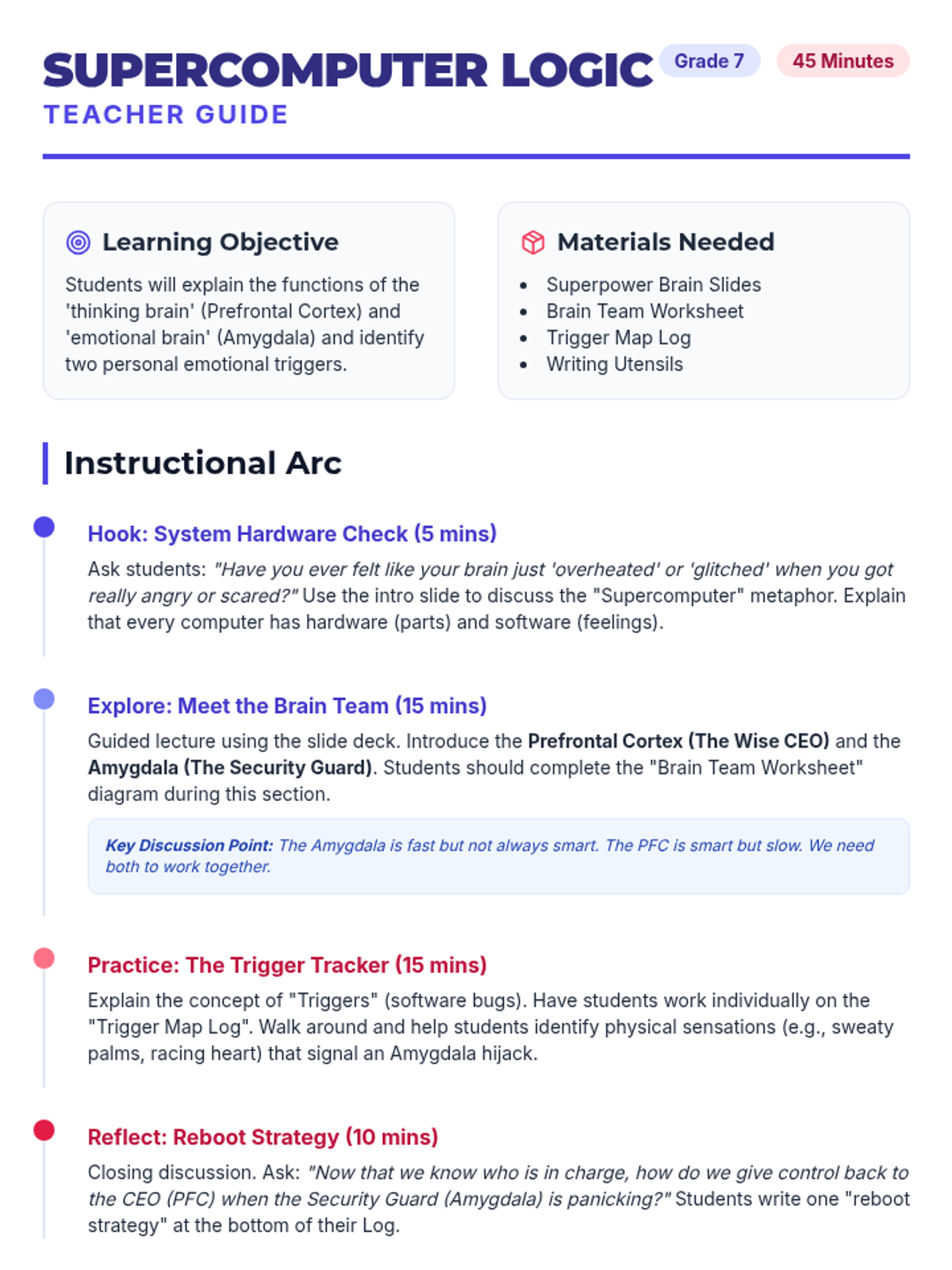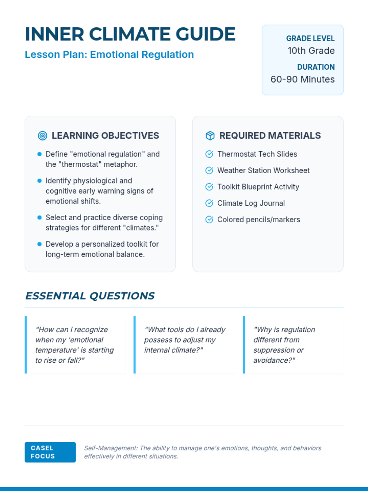A short, 15-minute trauma-informed lesson designed for 7th graders to understand emotional regulation and build a personal self-care toolkit after experiencing stress or trauma.