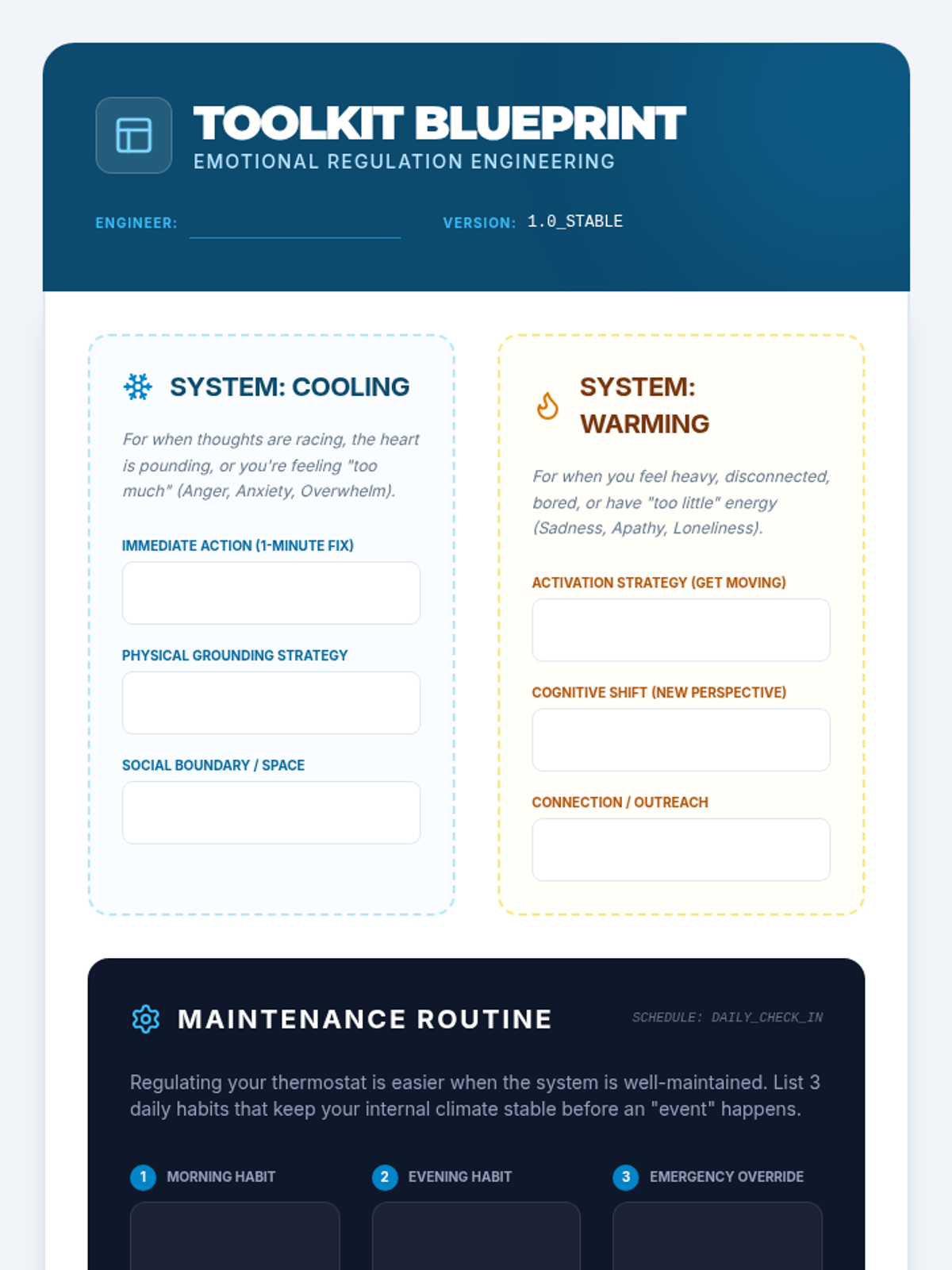 Synthesizing their learning, students create a 'Break the Glass' emergency plan for days when they feel low or anxious. They select their most effective pleasure and mastery activities and write specific implementation intentions (If I feel X, then I will do Y).
