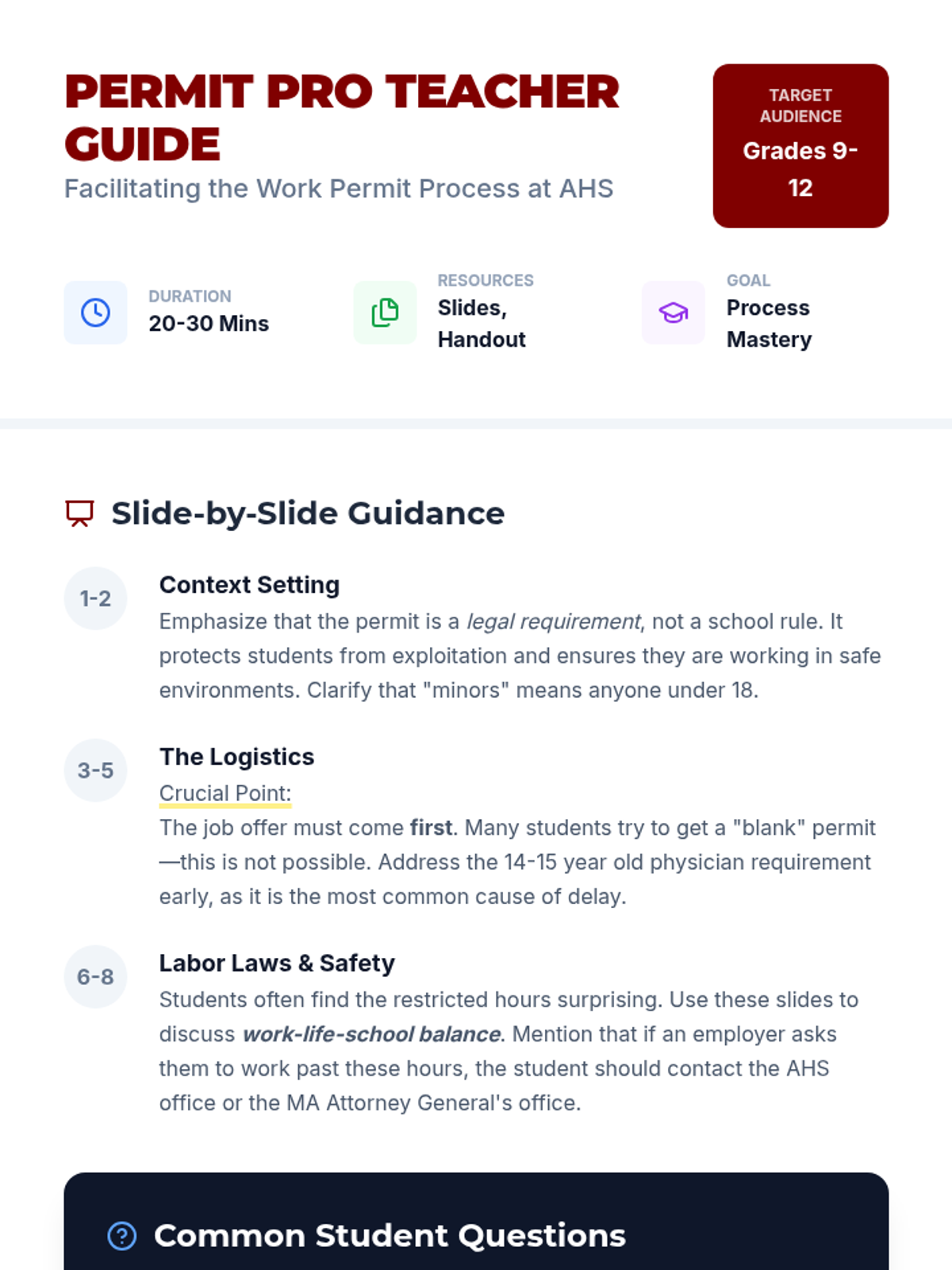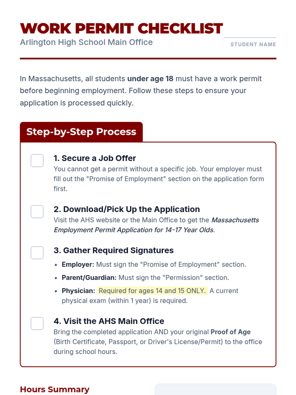 A comprehensive guide for students at Arlington High School to understand the Massachusetts work permit process, including eligibility, documentation, and labor laws.