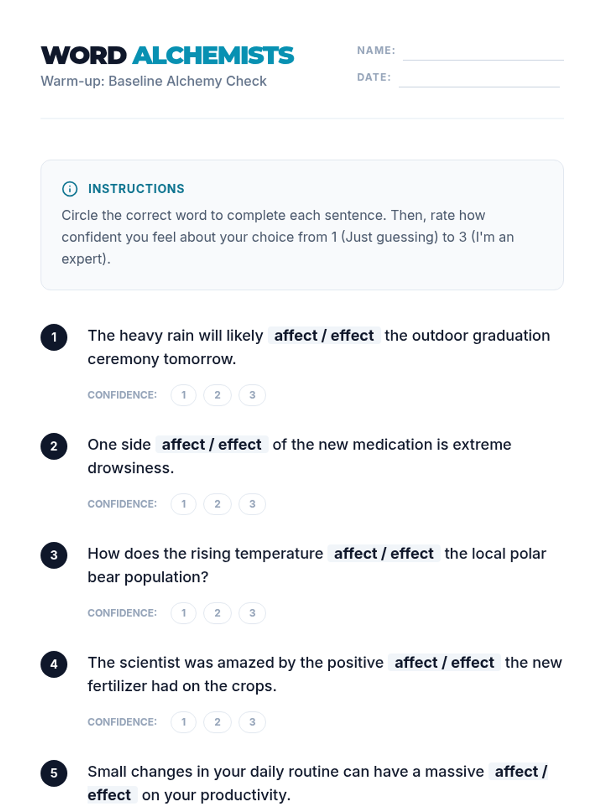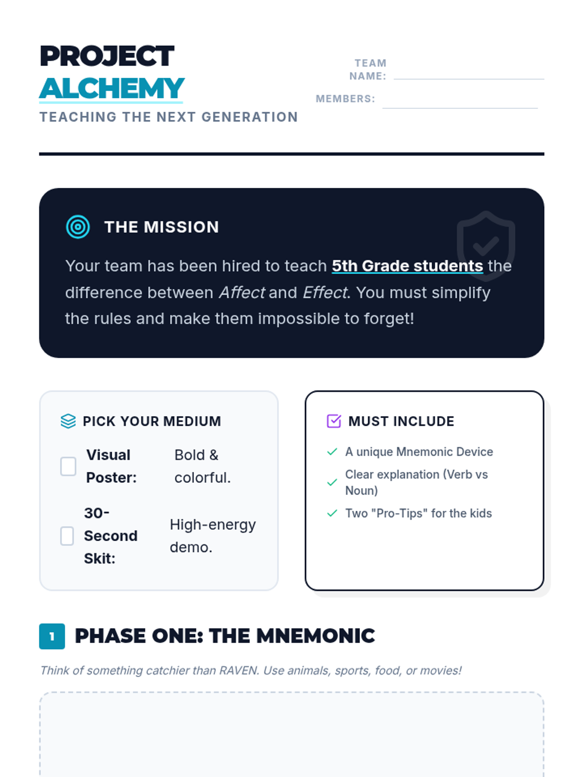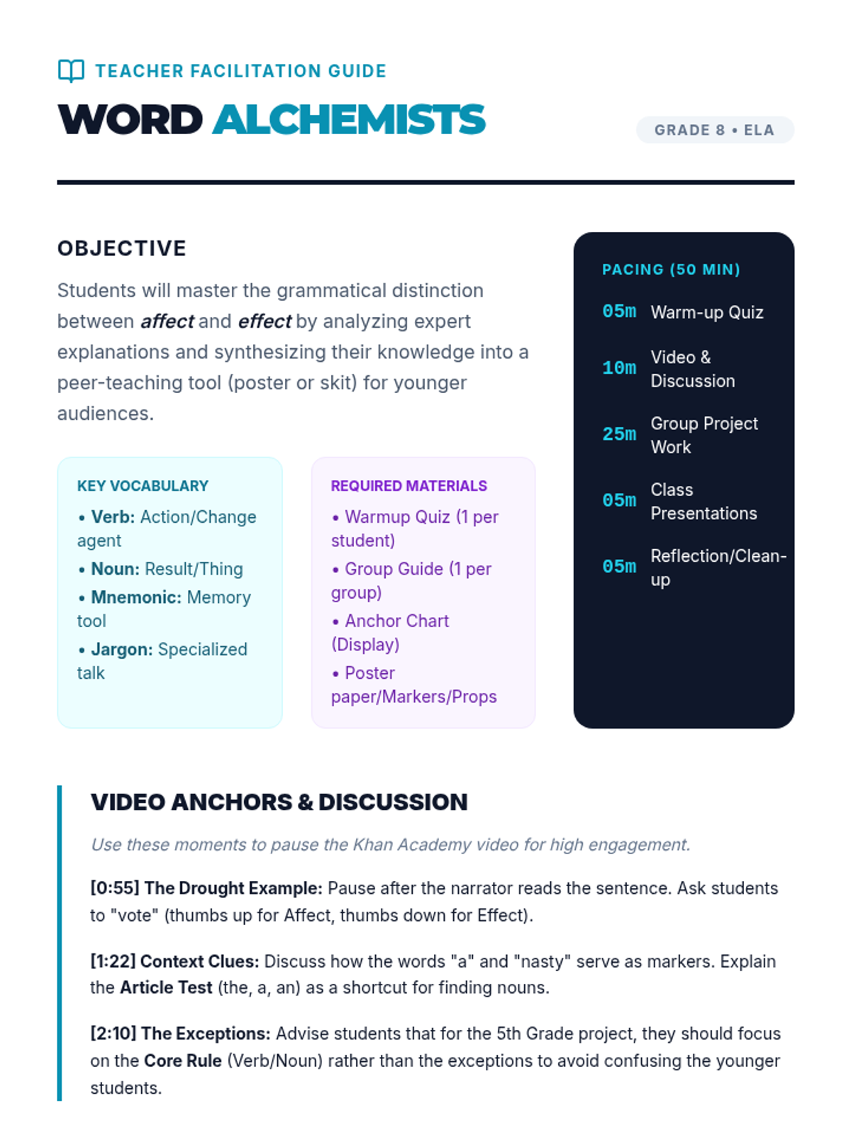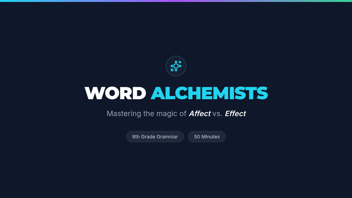 Students master the difference between 'affect' and 'effect' through analysis, video critique, and collaborative project-based learning where they create teaching tools for younger students.