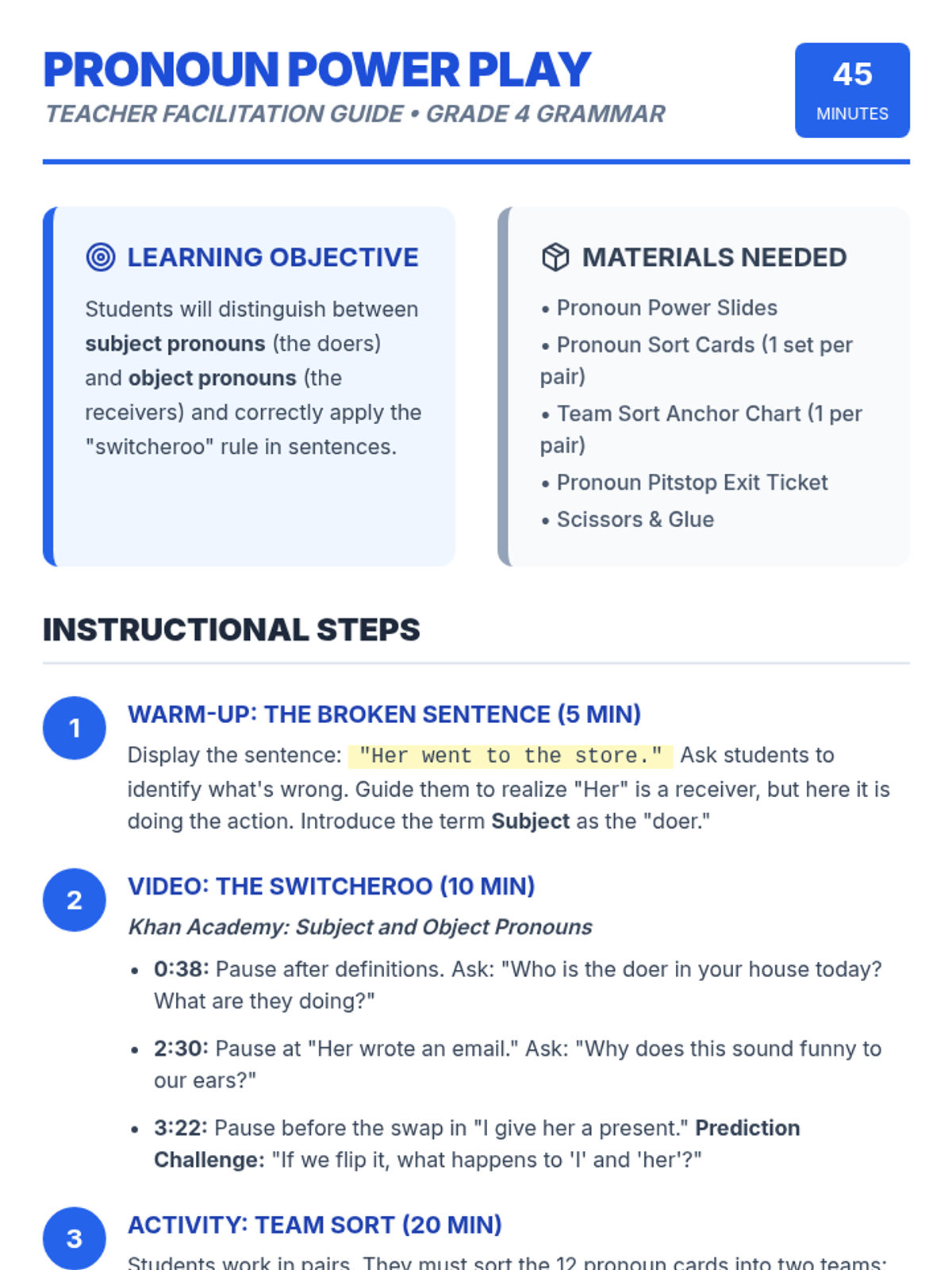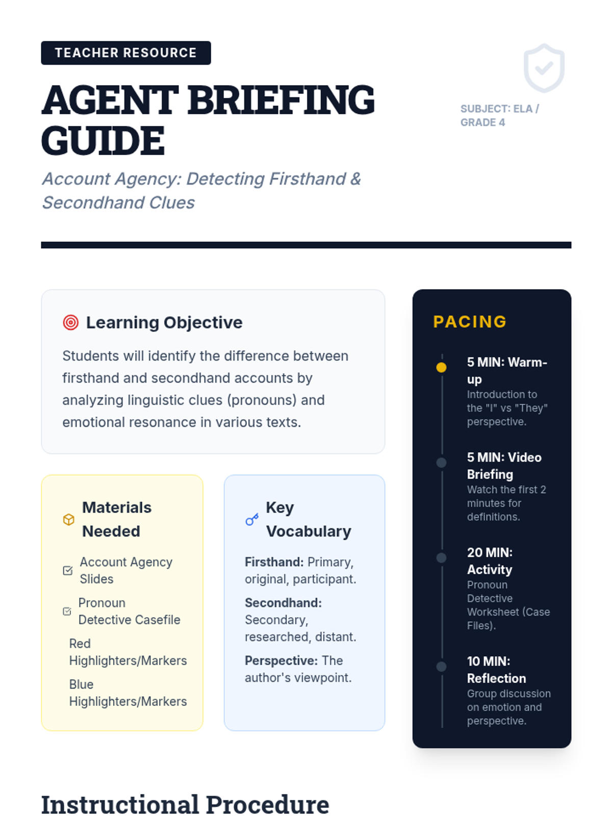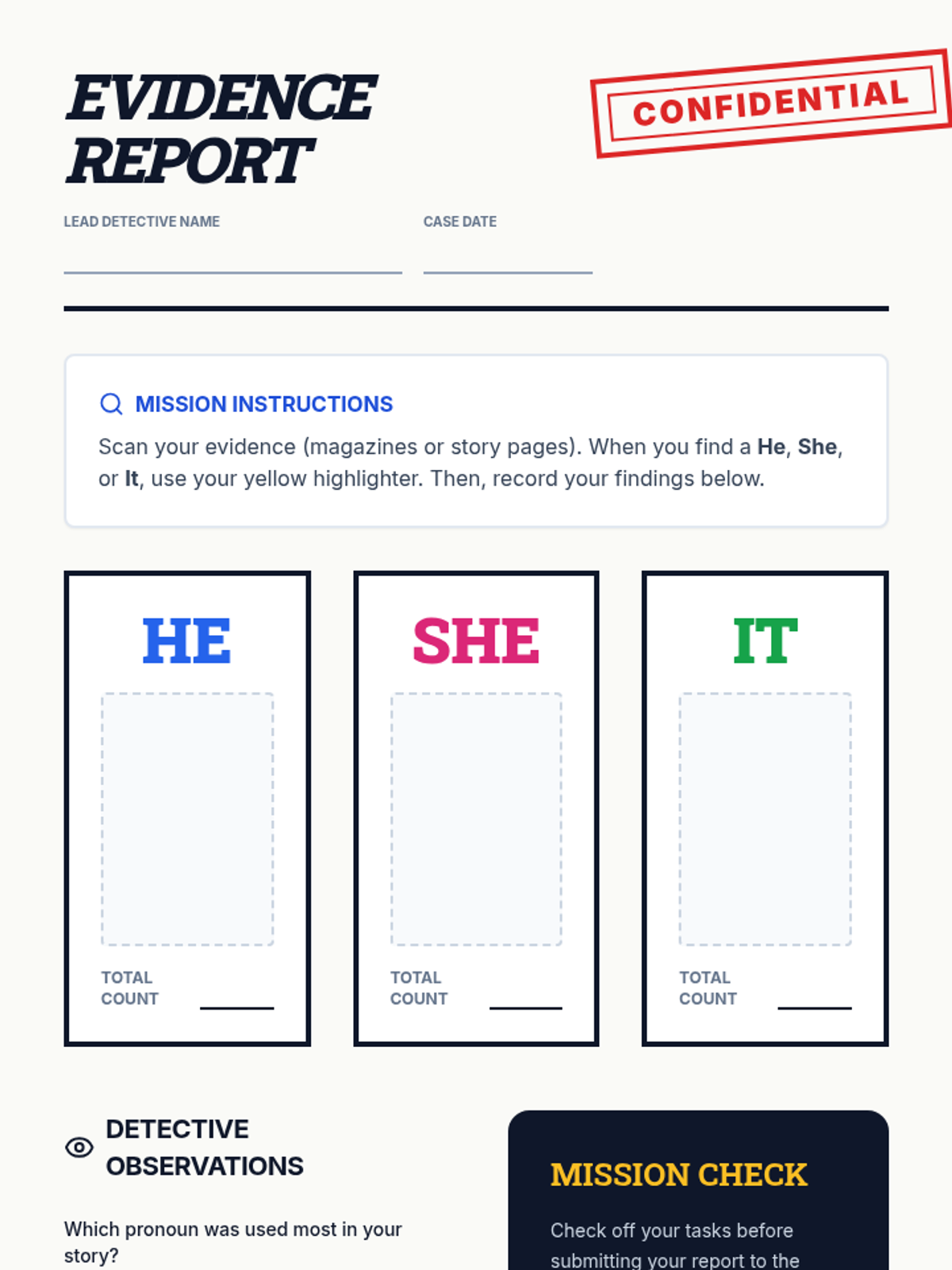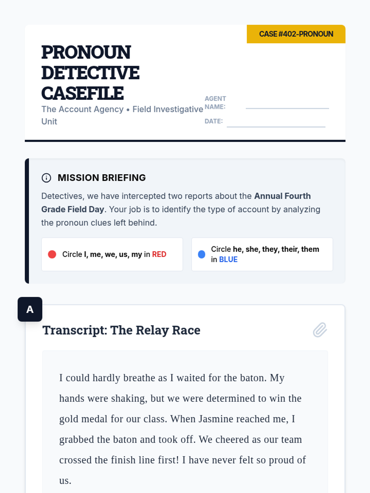 Students become POV Detectives to identify first-person and third-person points of view using evidence-based sorting and analysis.