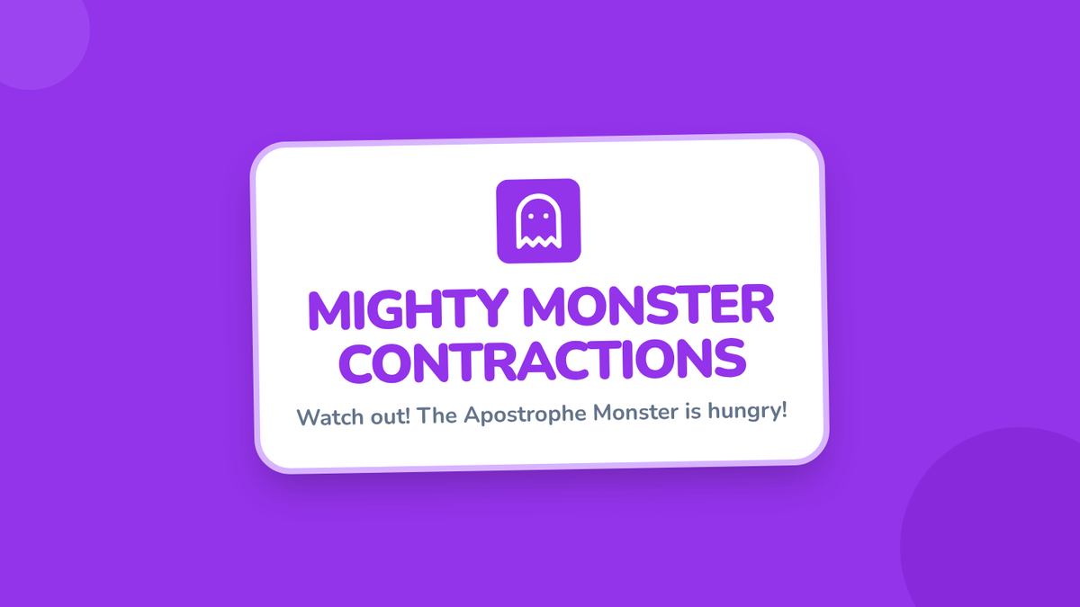 A fun, monster-themed lesson for 2nd graders to master contractions through a 'monster apostrophe' concept, featuring a video and a memory match game.