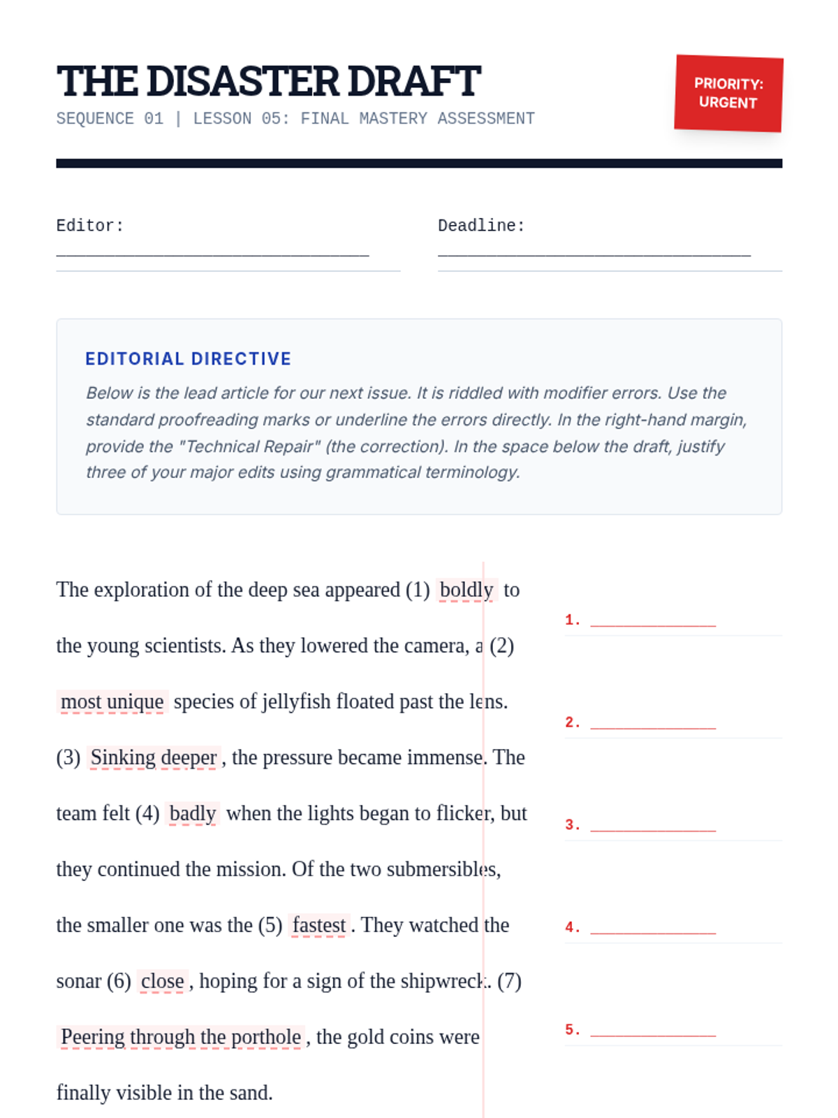 A lesson focused on the fundamentals of editing: capitalization, punctuation, sentence structure, and spelling. Students act as editors to find and fix errors in text.