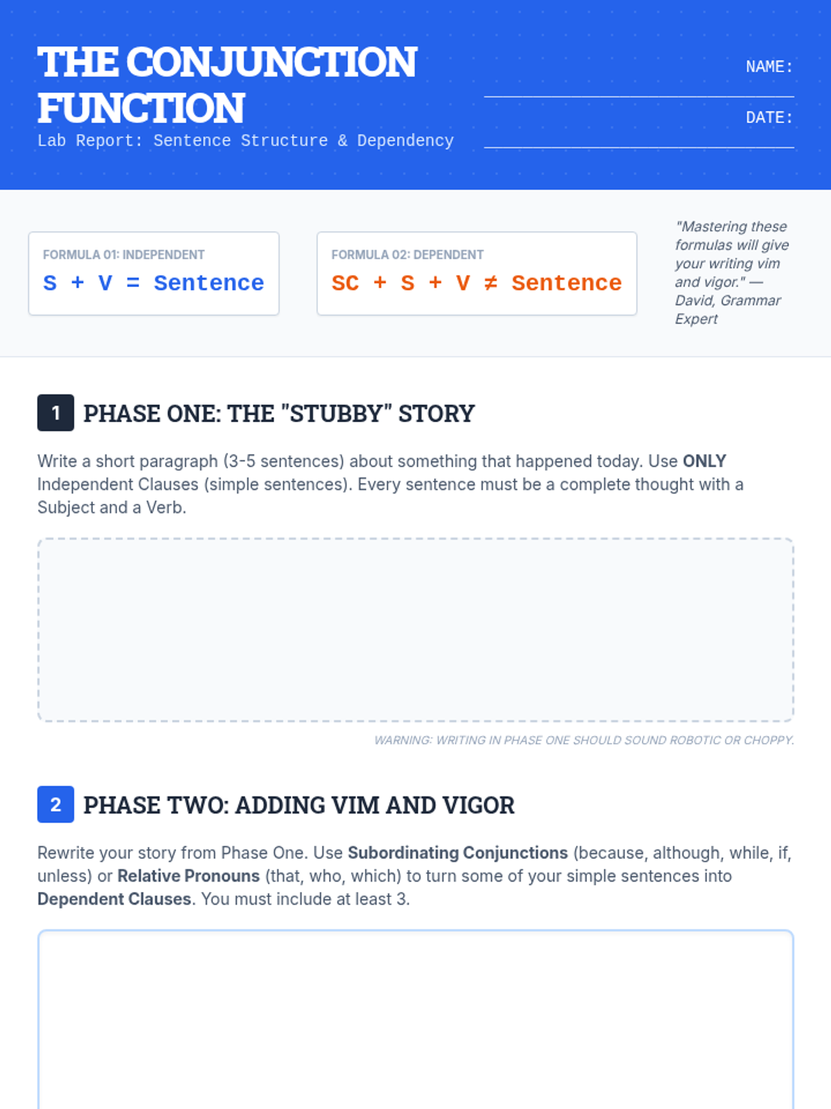 A high-energy lesson where students master conjunctions, interjections, and prepositions to enhance their sentence-writing superpowers.