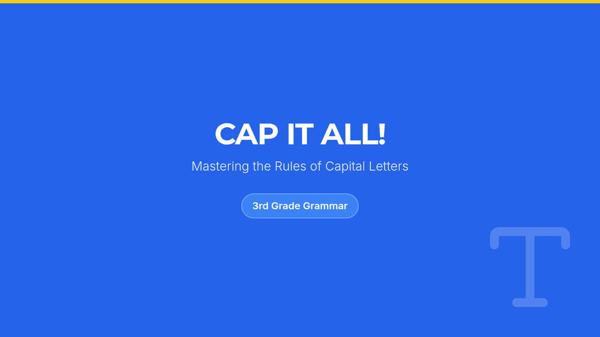 A detective-themed lesson teaching foundational capitalization rules, including the start of sentences, proper nouns, and the pronoun 'I'. Students act as 'Capital City Detectives' to identify and fix errors in case files.