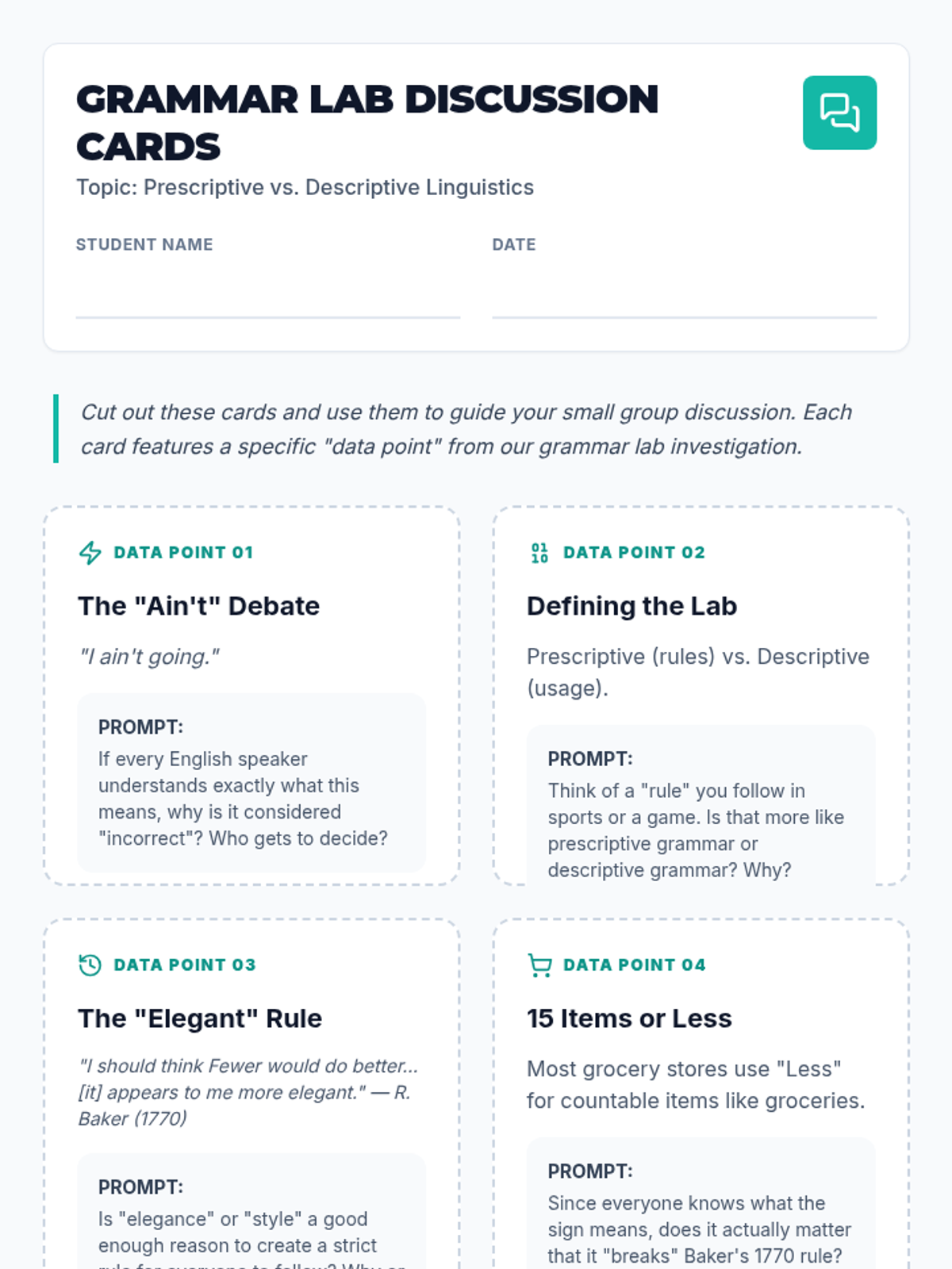 This lesson explores the historical origins of grammar rules, specifically the 'less vs. fewer' distinction, to teach the difference between prescriptive and descriptive grammar. Students will analyze how arbitrary preferences became standard rules and investigate other 'zombie rules' in the English language.